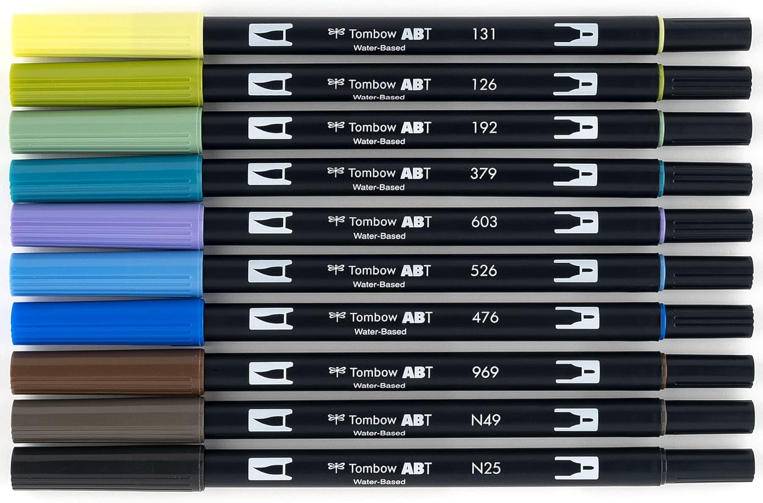 Tombow 56169 Dual Brush Pen Art Markers, Landscape, 10-Pack. Blendable, Brush and Fine Tip Markers