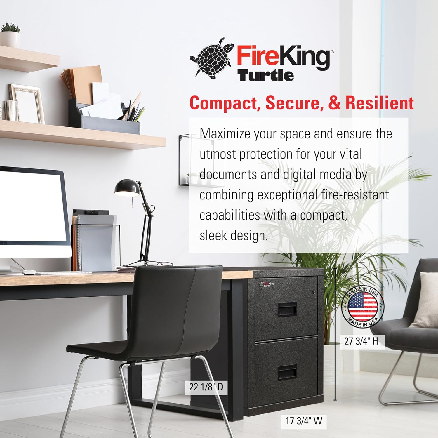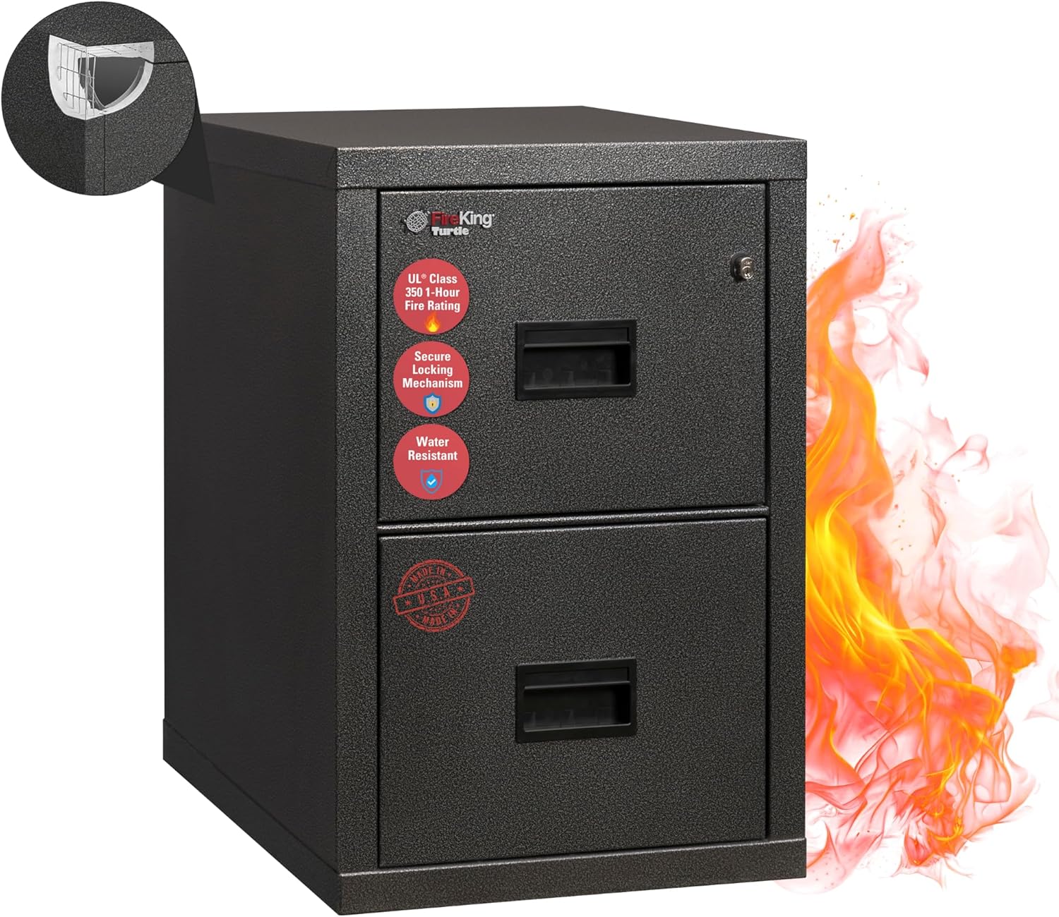 FireKing Turtle Vertical 2 Drawer Legal and Letter Fire Safe File Cabinet with Key Lock, 1 Hour Fire Rated, UL Rated & Water Resistant Home Safe, Filing Cabinet, Made in The USA, Black
