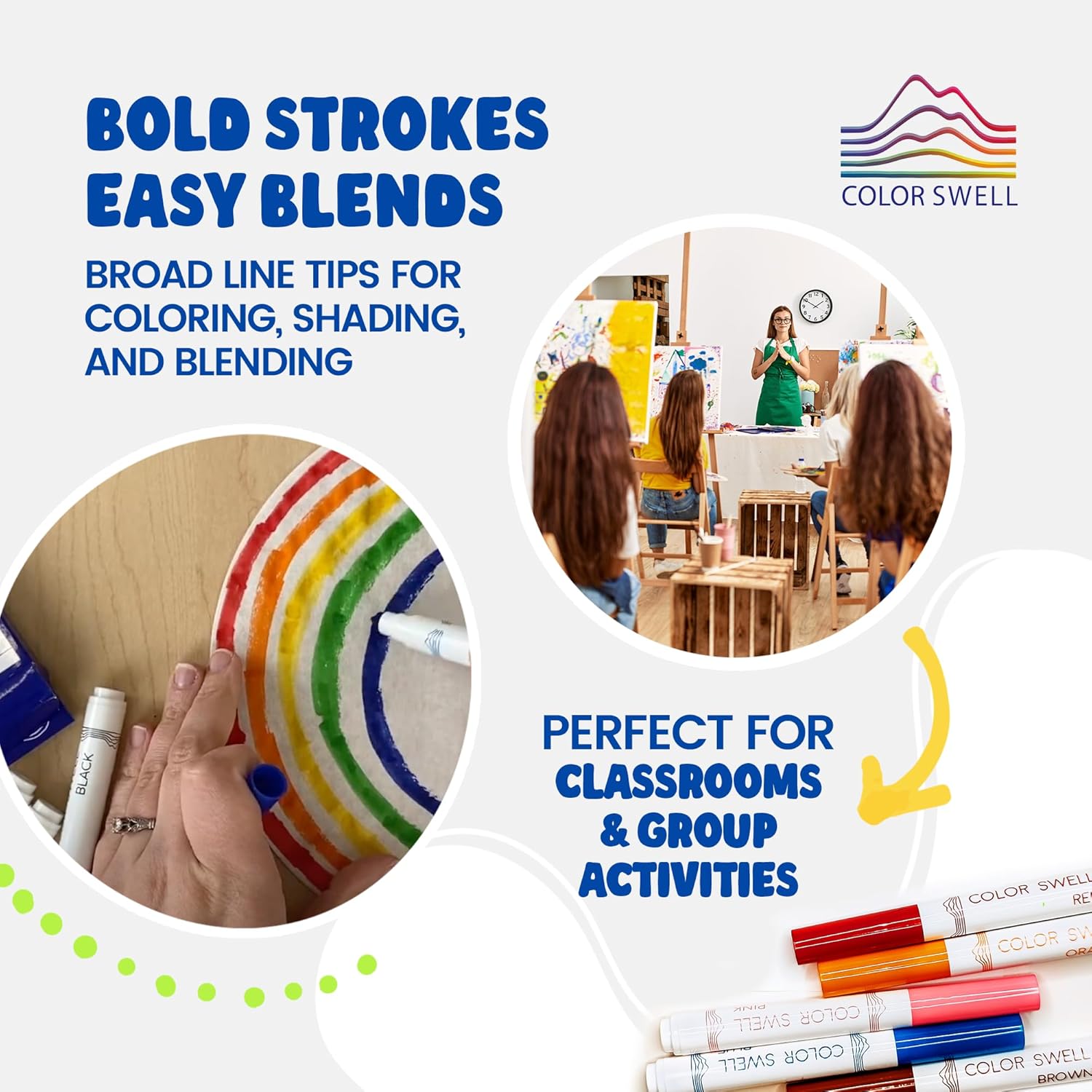 - STUDENT QUALITY FOR UNLEASHING YOUR CREATIVITY - All bulk broadline washable marker classroom packs are designed with broad line tips that offer smooth consistency that is great for your style of text, blending, shading, coloring, and other creative drawing techniques