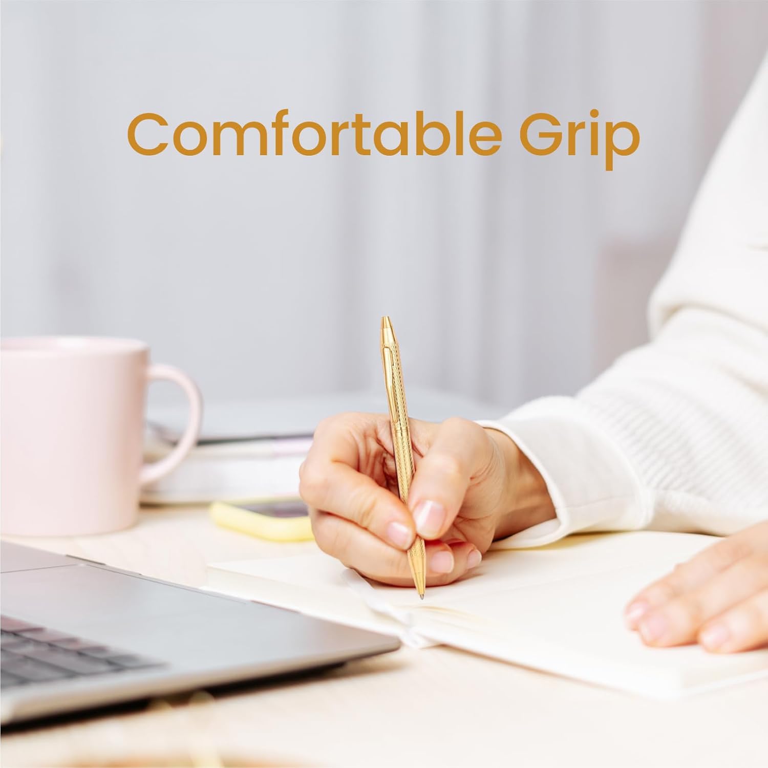 - Premium Gold Pen: Elevate your style with the black ink pens featuring a sleek metal body in a stunning gold finish; Perfect for women, flight attendants, police officers as uniform pen, or wedding guest books as guest book pen, gold office supplies