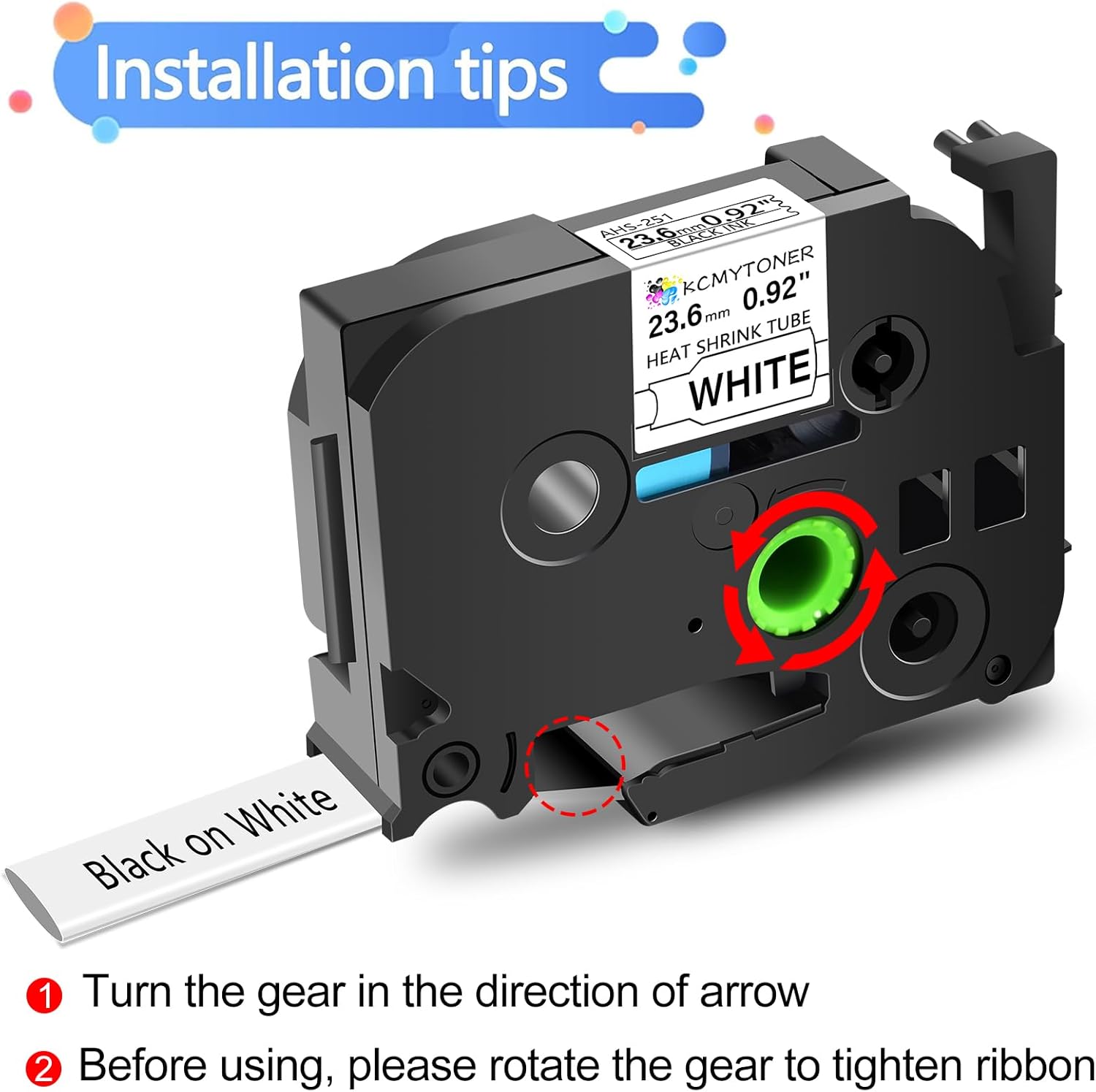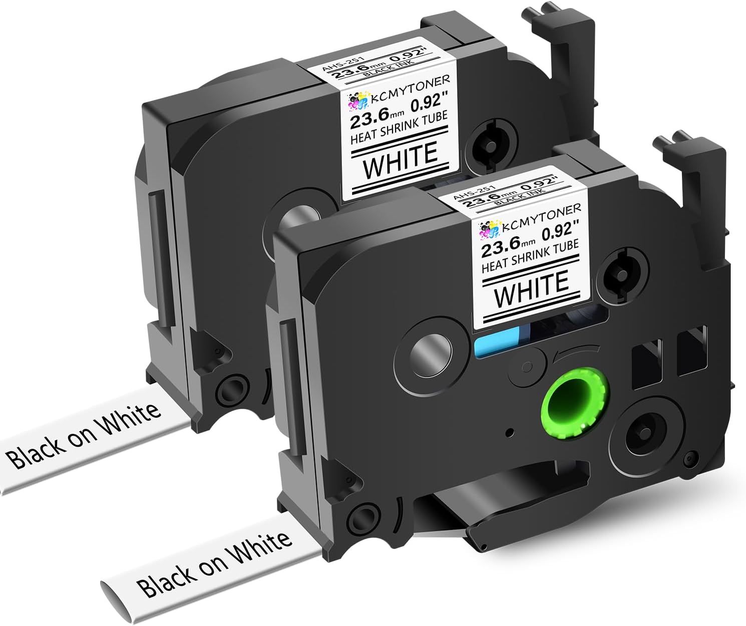 - Package Included: 2 pack KCMYTONER compatible for ptouch HSe-251 HS-251 HSe251 HS251 heat shrink tube label tapes; color: black text on white tape; size: 1 inch (23.6mm, flattened width) x 4.92 feet (1.5m).The size indication for this heat-shrink tube label is the width of the flattened tube as a label in a label printer. Do be aware that the size given relates to the label making machine, not the wire. HSe-251 23.6mm tube suits cables ranging from Φ7.3mm to Φ14.3mm in diameter.