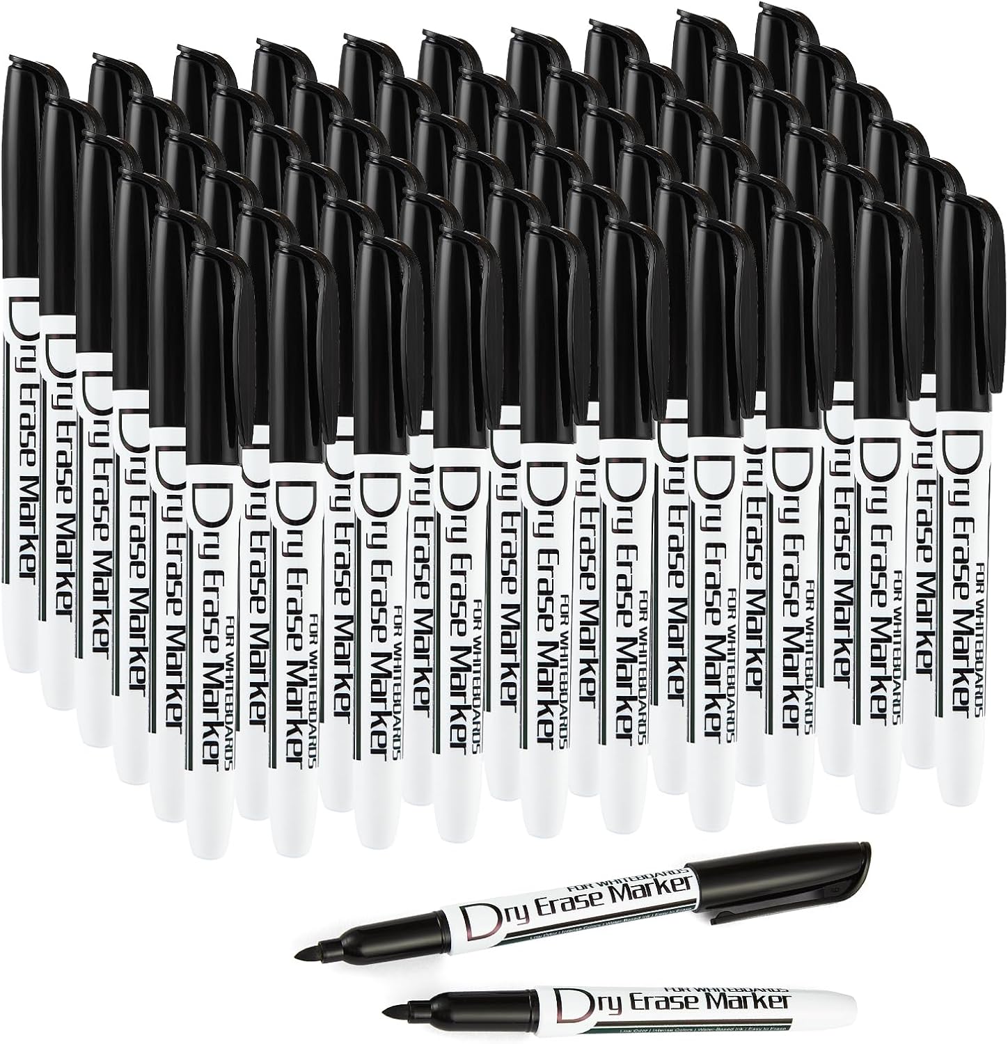 Volcanics Black Dry Erase Markers Bulk Pack of 60 Low Odor Fine Tip Whiteboard Pens for Whiteboard Dry Erase Calendar