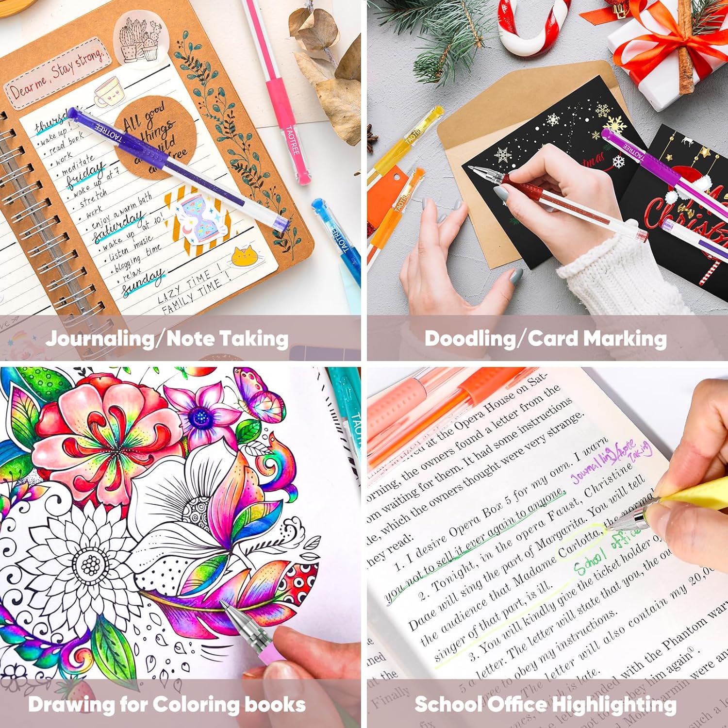 - Each Gel Pen is fitted with Comfort Grip, easy to hold and comfortable for writing, drawing, scrapbooking, sketching, Crafting, doodling, art designs and journaling. coloring pens for adults.