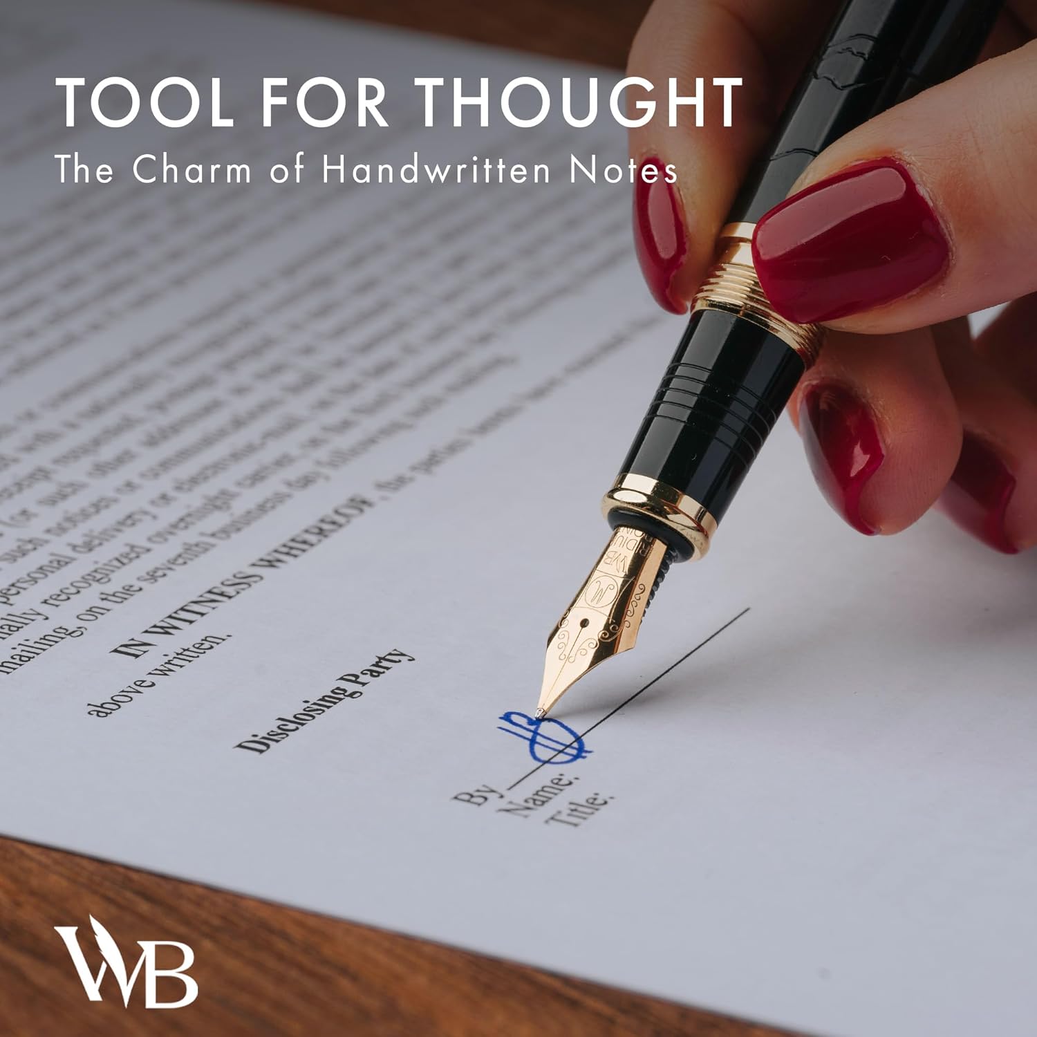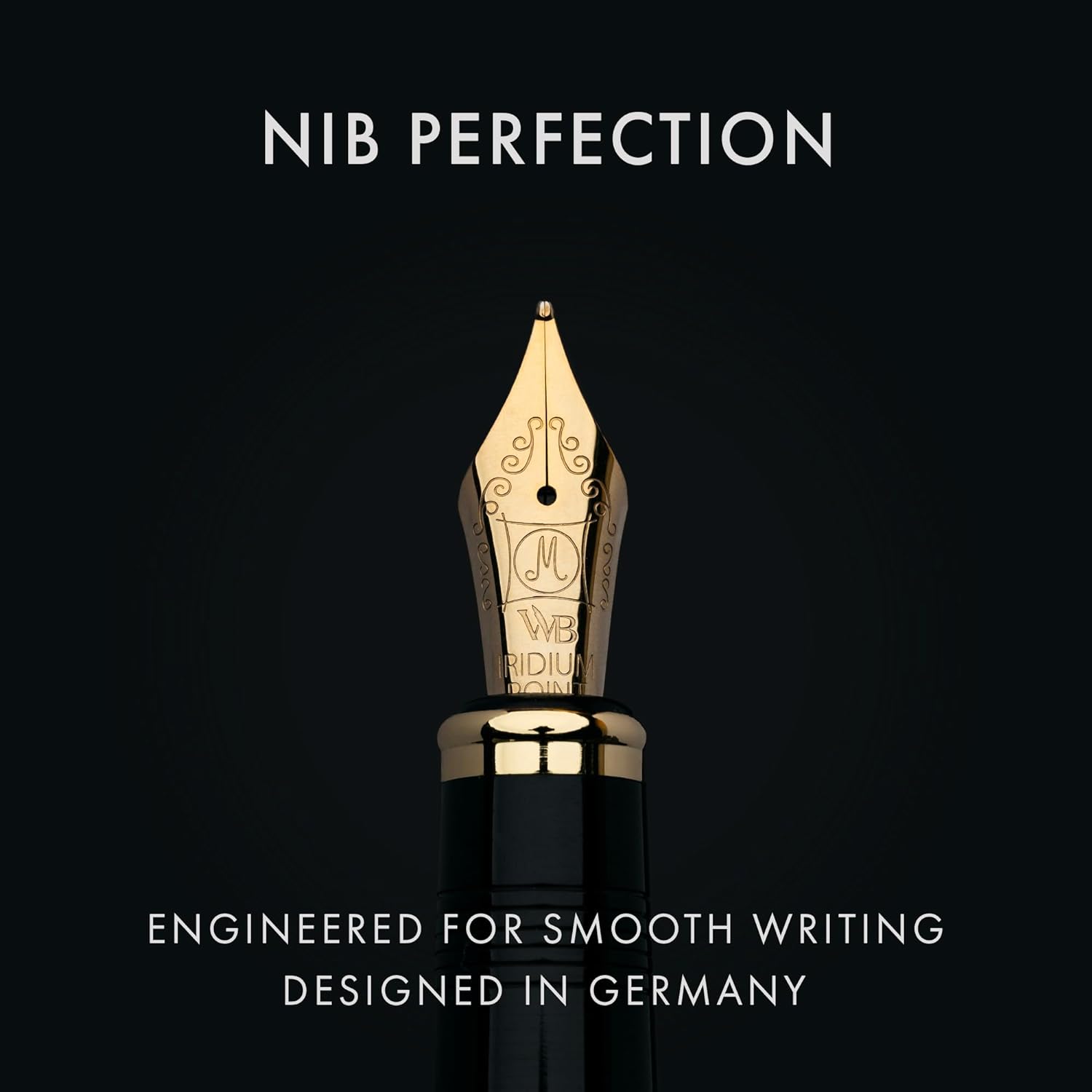 Wordsworth & Black Primori Fountain Pen Set [Black Gold]; Medium Nib, Gift Case, 24 Ink Cartridges, Refill Converter, Manual; Journaling, Calligraphy, Smooth Writing Pens; Left & Right Handed