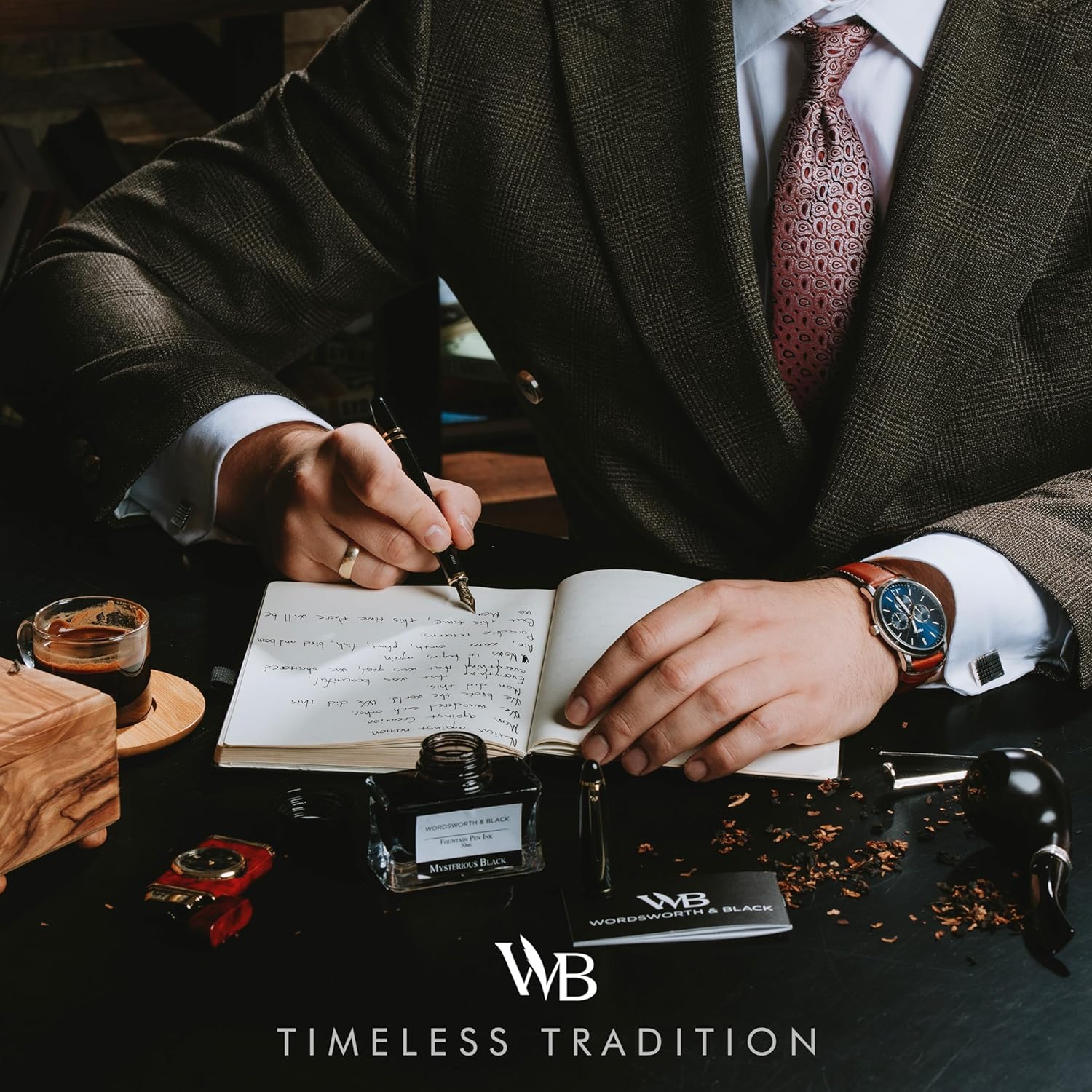 - ✒️Discover The All-inclusive Refillable Fountain Pen Set - Includes luxurious Majesti fountain pen, ink converter, 12 x blue ink cartridges, 12 x black ink cartridges, premium leather pen case, and a deluxe gift box - ready to be gifted. Included with every order is a complete instruction booklet for your Wordsworth and Black Pen Set. All the information you'll need to get started using and enjoying your luxurious writing tool will be right at your fingertips!