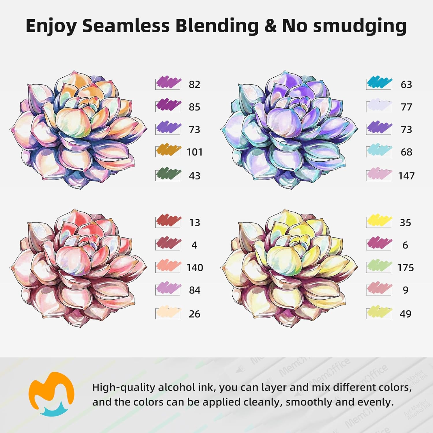 - UNLEASH YOUR CREATIVITY - The MemOffice alcohol based markers come with dual tips, allowing you to create versatile styles, sketches, and patterns with ease. Broad and fine twin tips are designed for precise highlighting, underlining, or quick coloring in large areas