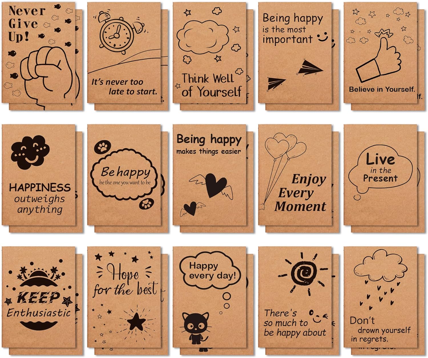 feela 30 Pack Kraft Notebooks, 15 Designs A6 Cute Mini Pocket Notebooks and Journals, Lined Motivation Small Journal Notebook Bulk for Women School Supplies Taking Memos, 4.1X5.8 in, 80 Pages