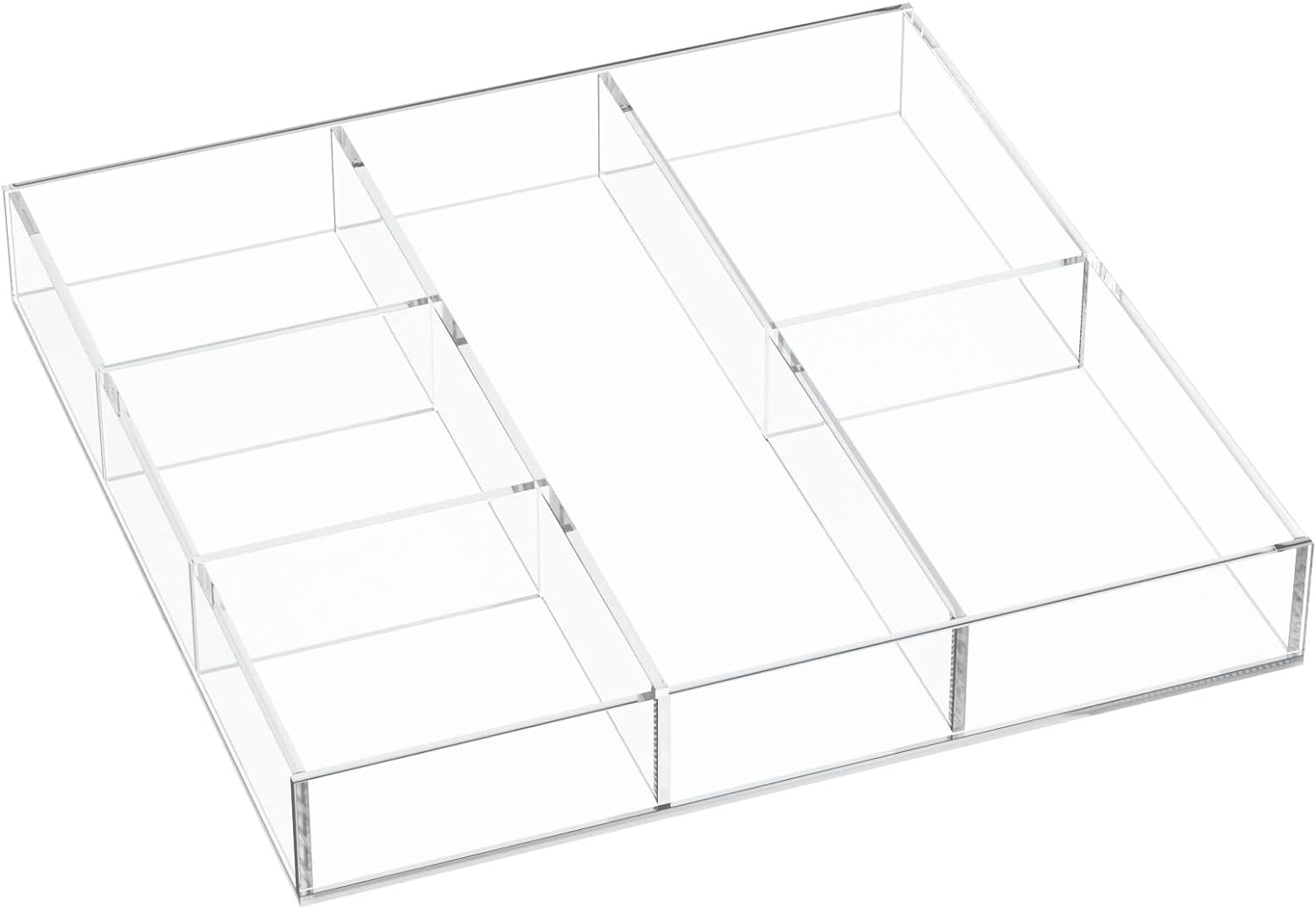 HIIMIEI Acrylic Drawer Organizer, 6 Section Clear Makeup Tray Organizer for Drawer Office Bedroom(11.8x11.8 inch)