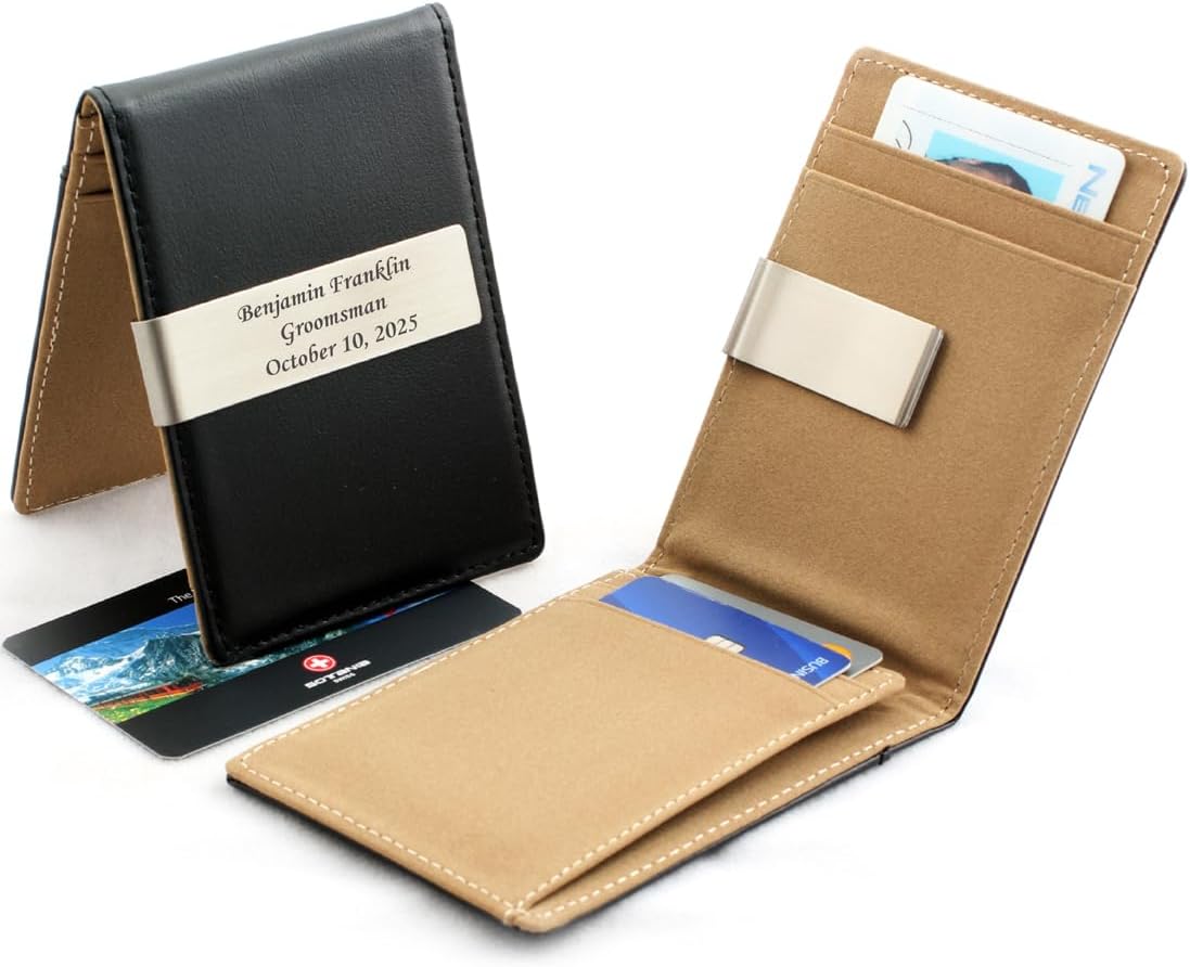 Free Engraving - Personalized Groomsmen Gift, Roller Ballpen, Ballpoint pen, Ball pen, Refillable Pen, Refill pen, Leather Money Clips, Card Holder, Three Lines Each 30 Characters