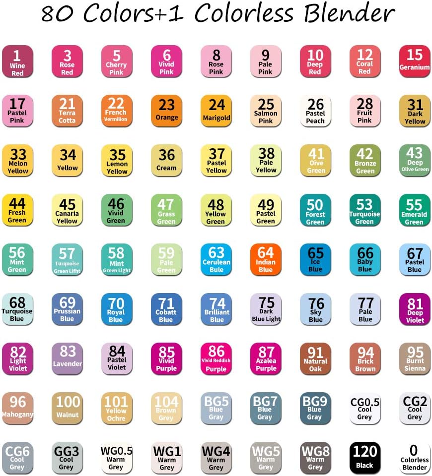 ABEIER 80 Color Alcohol Based Dual Tip Markers Set, Plus 1 Colorless Blender Pen, Permanent Sketch Markers for Kids, Adults Coloring and Artist Illustration