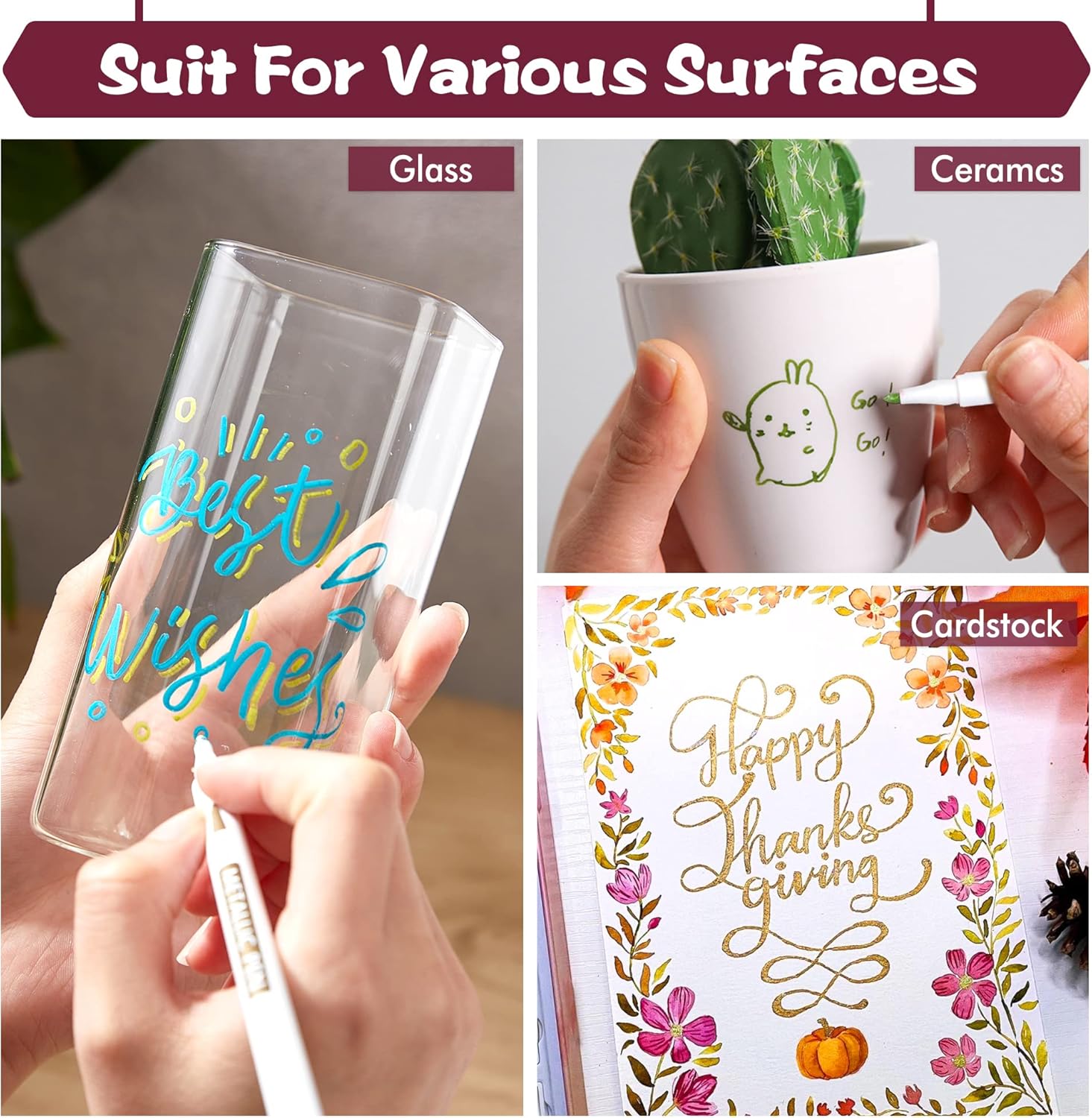 - 【Works on most surfaces 】: Metallic paint markers works great on black paper and most surfaces, such as stones, cards, glass, ceramics, metal, wood and more. Ideal for decorating cards, making scrapbooks and other school crafting projects.