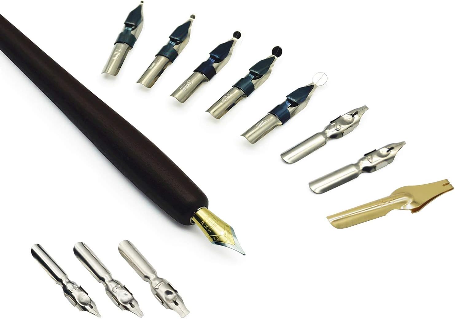 - Variety of Nibs: Perfectly weighted Wooden pen and nibs holder allow nibs to be changed. 12 different nibs provide superior control and stability delivering – Use specialist nibs to dispense ink smoothly in different thickness lines.