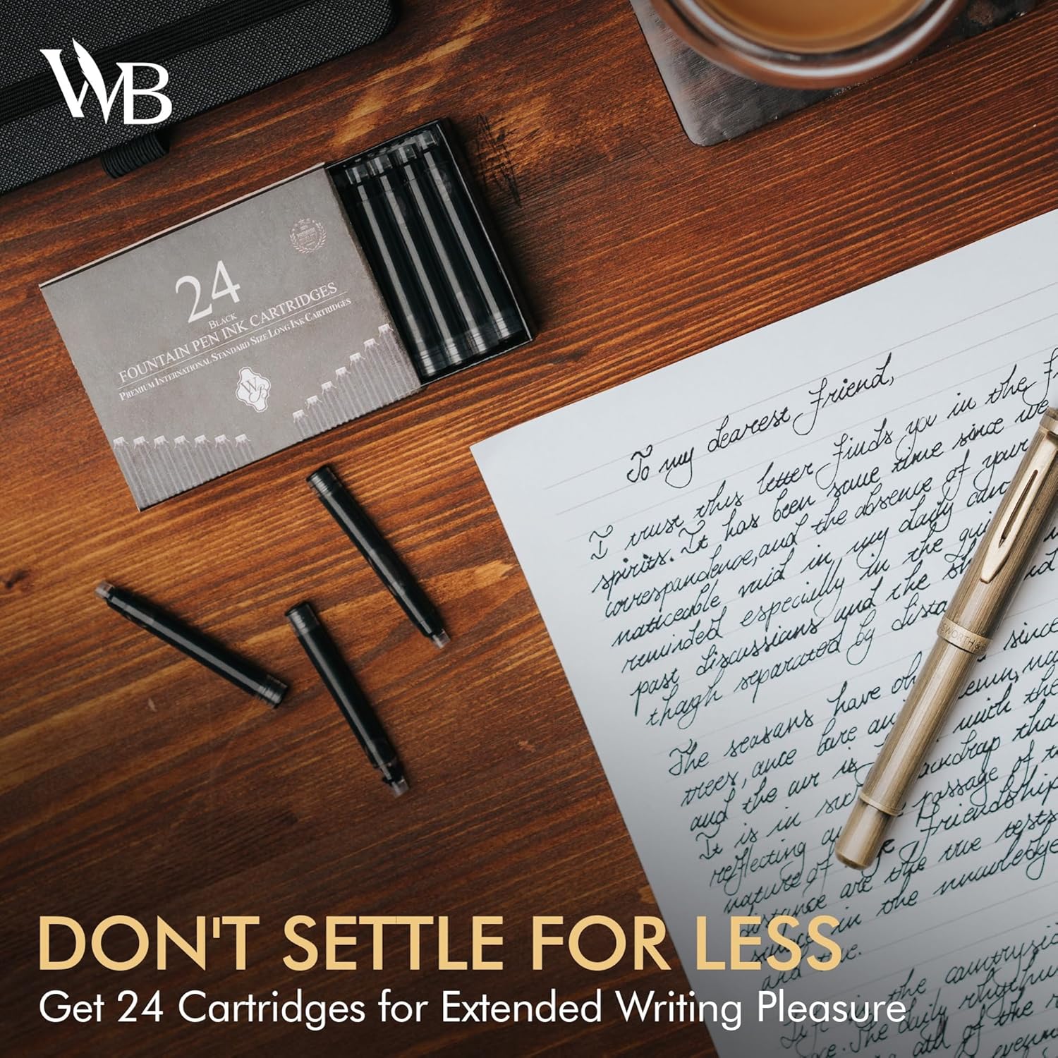 Wordsworth & Black 24 Pack Fountain Pen Ink Refills - SET OF 24 BLACK Ink Cartridges - International Standard Size - Length Appr 1.5" - Base Diameter Appr 0.24" - Disposable and Generic