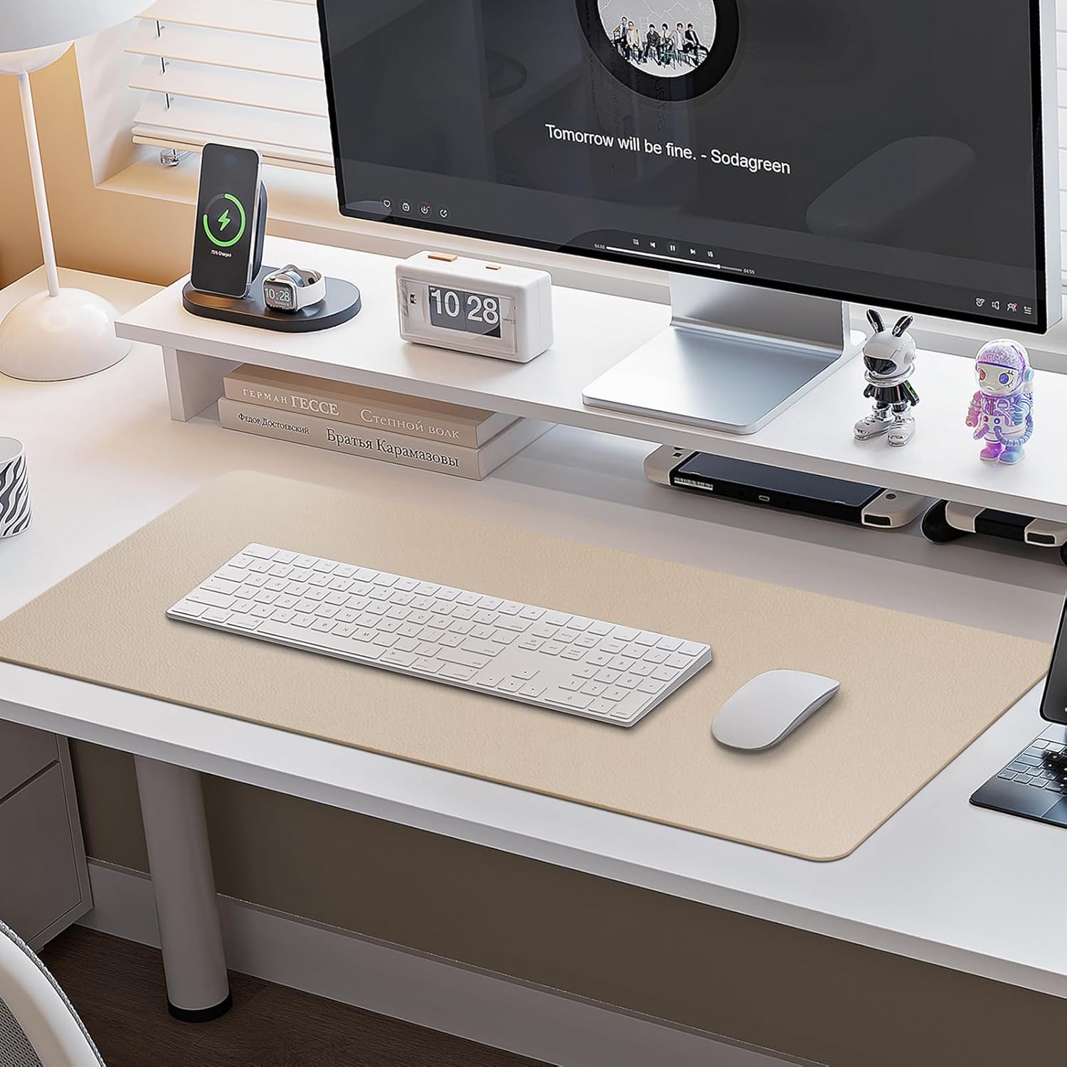 Boutilon Leather Desk Pad Protector,Non-Slip Mouse Pad,Laptop Desk Pad,Office Mouse Mat,Waterproof Leather Desk Blotter,Desk Writing Pad for Office and Home (M-Beige,30"x14")