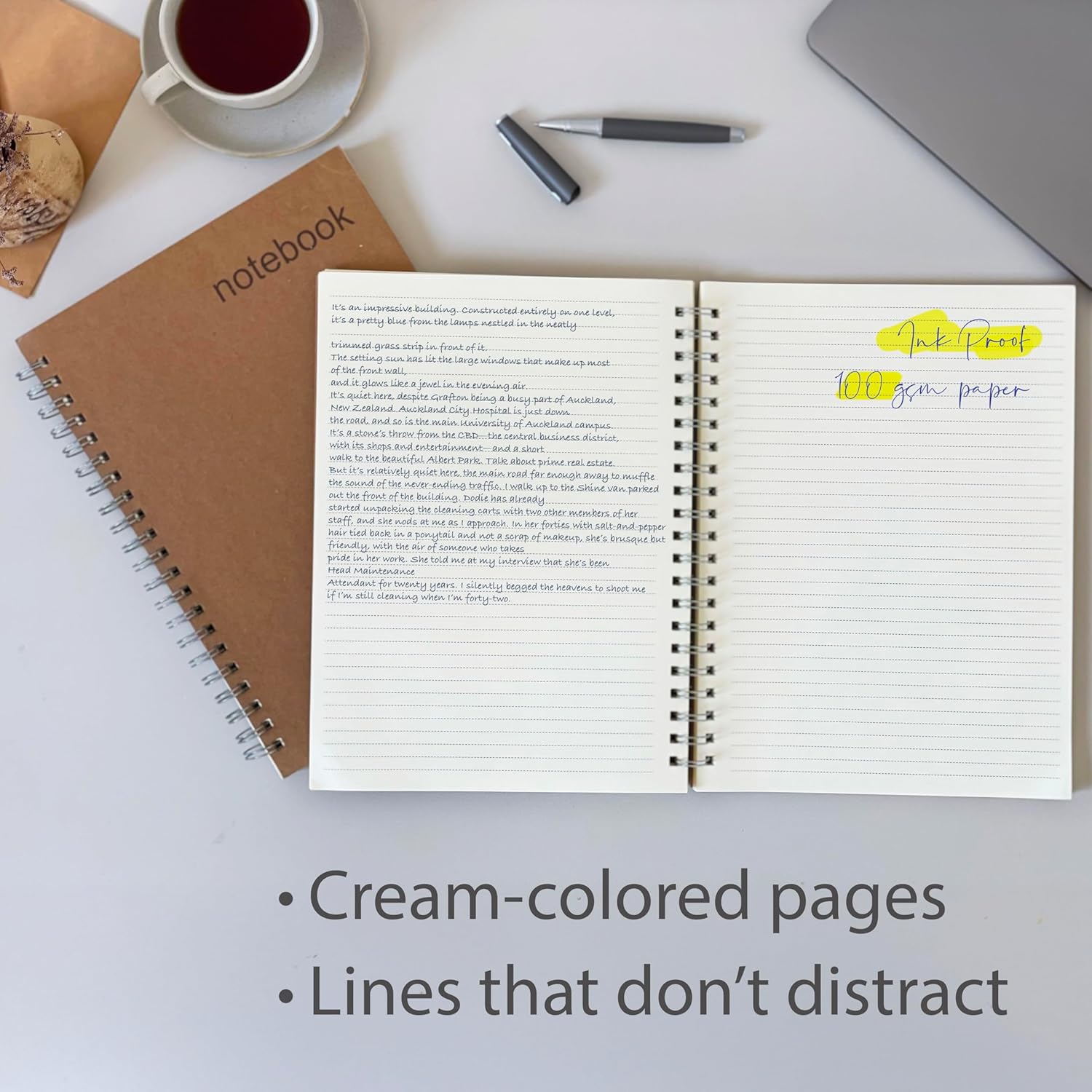- HIGH-QUALITY & LAY FLAT PAPER. Each A4 journal has 200 pages of ivory paper. 100gsm pages are lay flat and perfect for writing with fountain pens, color pencils, and felt-tip pens. Line spacing is 7 mm.