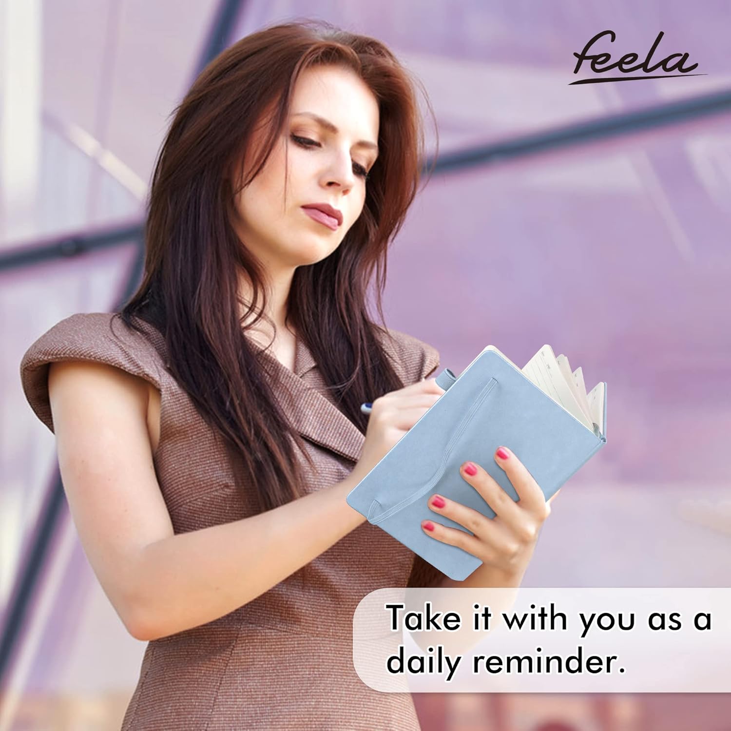 feela 5 Pack Notebooks Journals Bulk, Hardcover Notebook Classic Ruled Lined Journals with Pen Holder for Women Girls School Business Supplies, with 5 Black Pens, 120 GSM, 5.1”x8.3”, A5, Light Blue