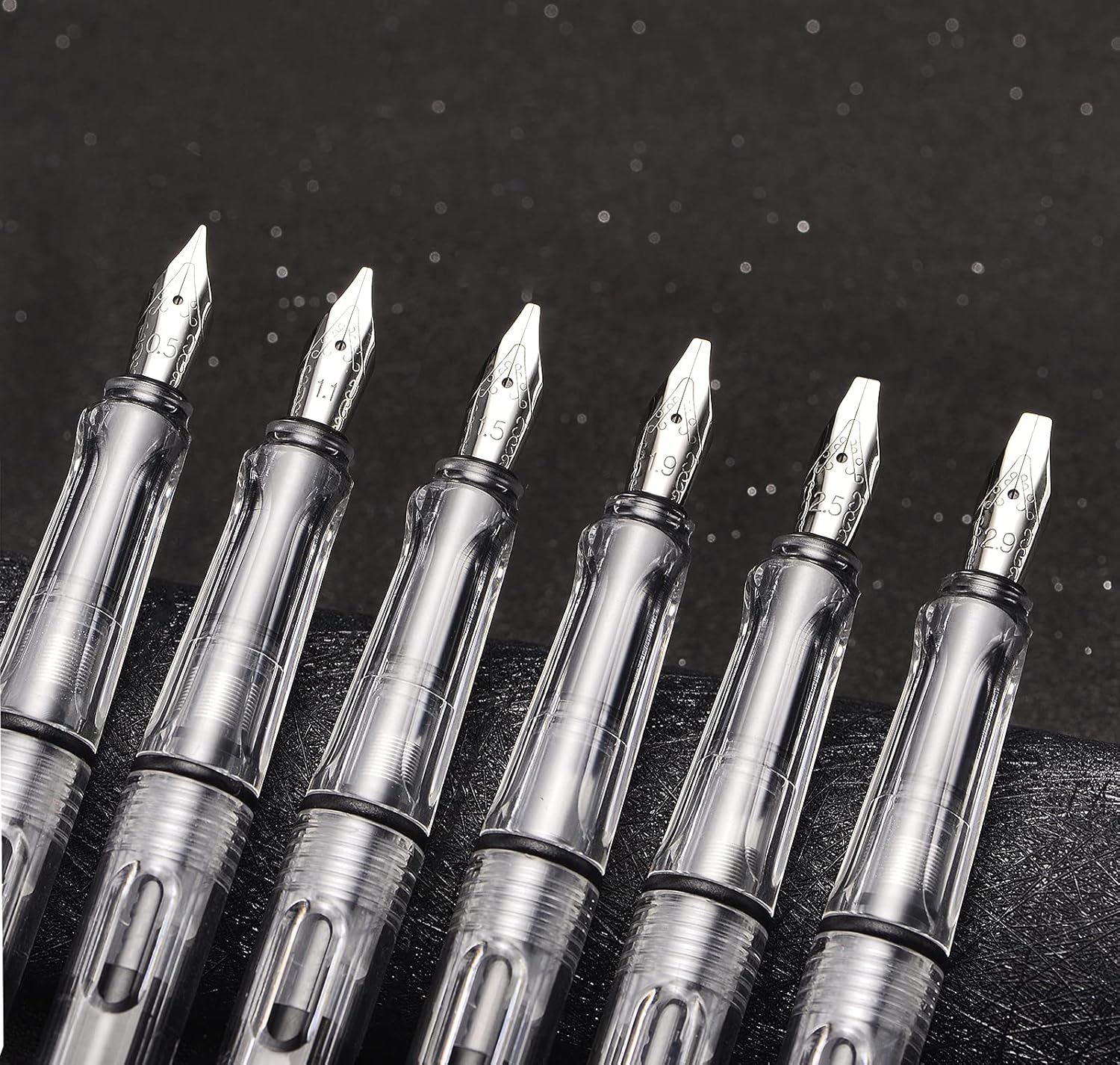 - This calligraphy pen set includes 6 fountain pens with different size nib (0.5mm, 1.1mm, 1.5mm, 1.9mm, 2.5mm and 2.9mm) to meet your all your writing and drawing demand.