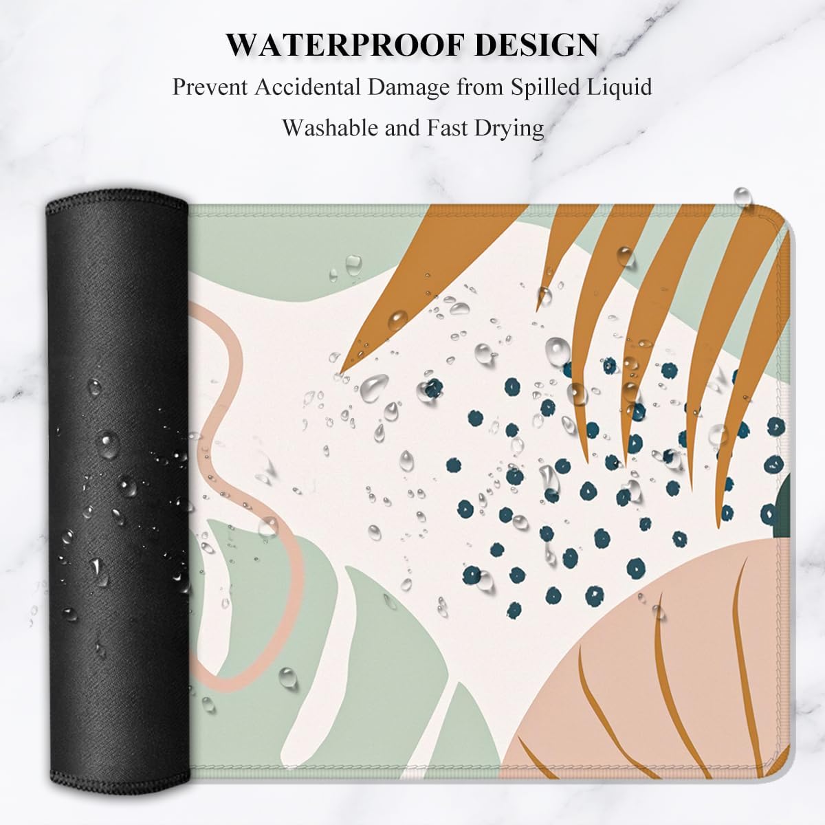 Auhoahsil Large Mouse Pad, XXL Gaming Mousepad, Desk Mat for Desktop, Thick Rubber, Big & Long Size, Stitched Edges, Full Desk Pad for Laptop & Computer, Extended 31.5 x 11.8 in, Boho Leaves
