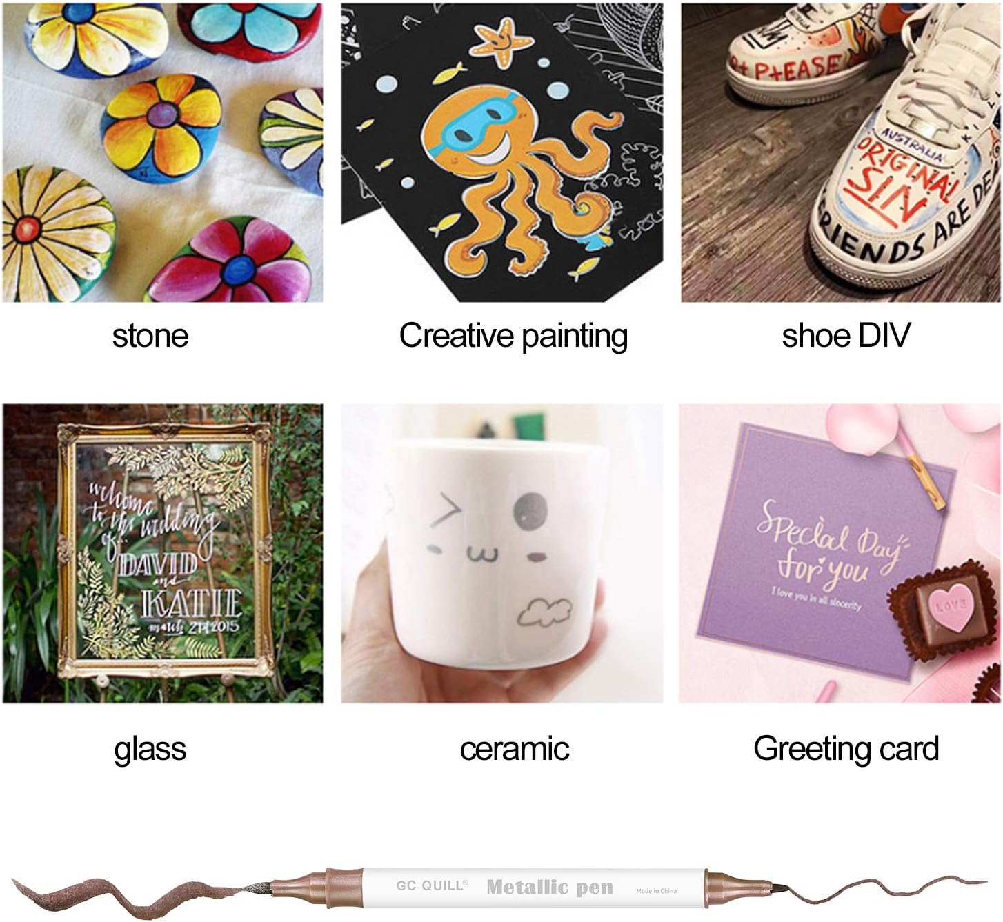 GC QUILL 12 Colors Metallic Marker Pens - Dual Tip Brush and Fine Point Pens for DIY Album, Black Cards, Scrapbooking, Craft Supplies, on Ceramic, Stone, Glass, Fabric GC-MP12