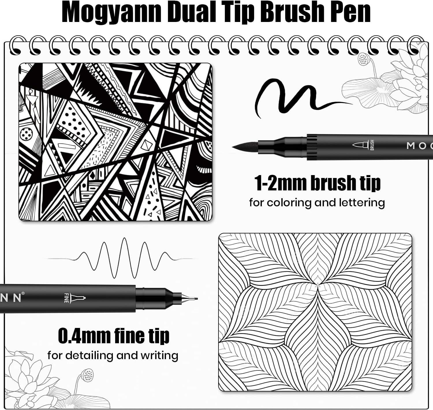 Mogyann Drawing Pens, 12 Pack Dual Brush Pens Black Markers for Art Drawing Sketching