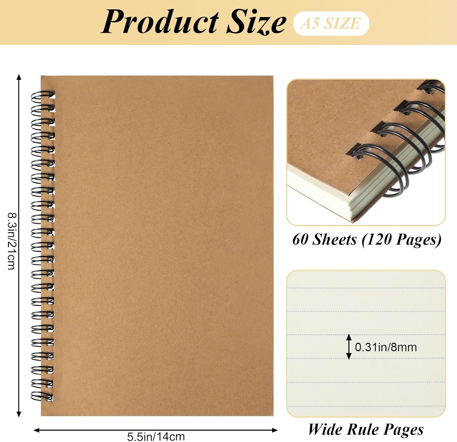 - Spiral Binding: with spiral binding design, kraft notebooks can prevent the inner pages from folding, and easy to tear pages; The lock wire prevents coil snags, so it won't get caught on your clothes or backpack easily