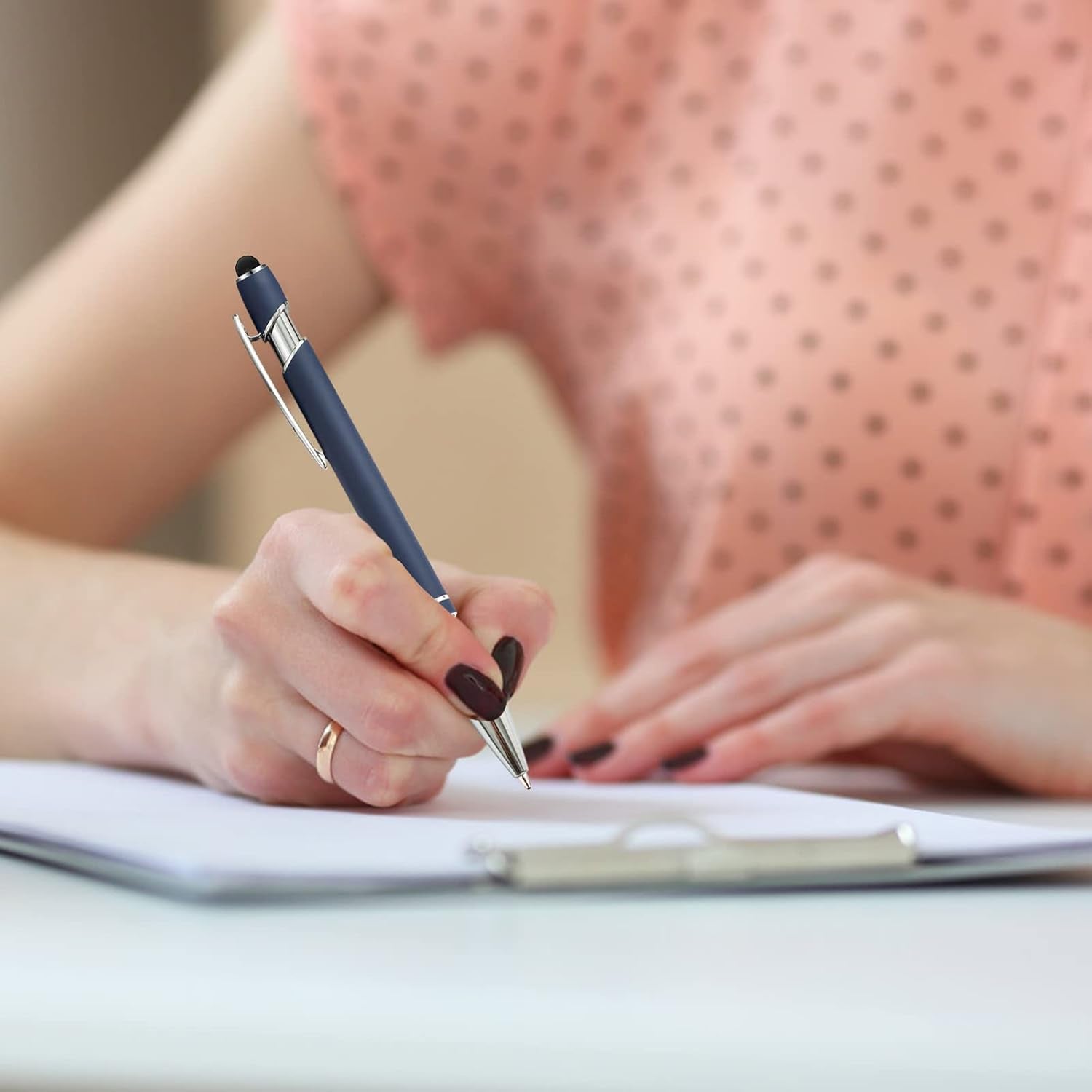 - ❤【Durable Material】Made of high-quality metal, these blue stylus pens are both comfortable and durable. The press-type design means you don't have to worry about losing the cap or ink flow. The elastic spring inside ensures smooth writing and touch.