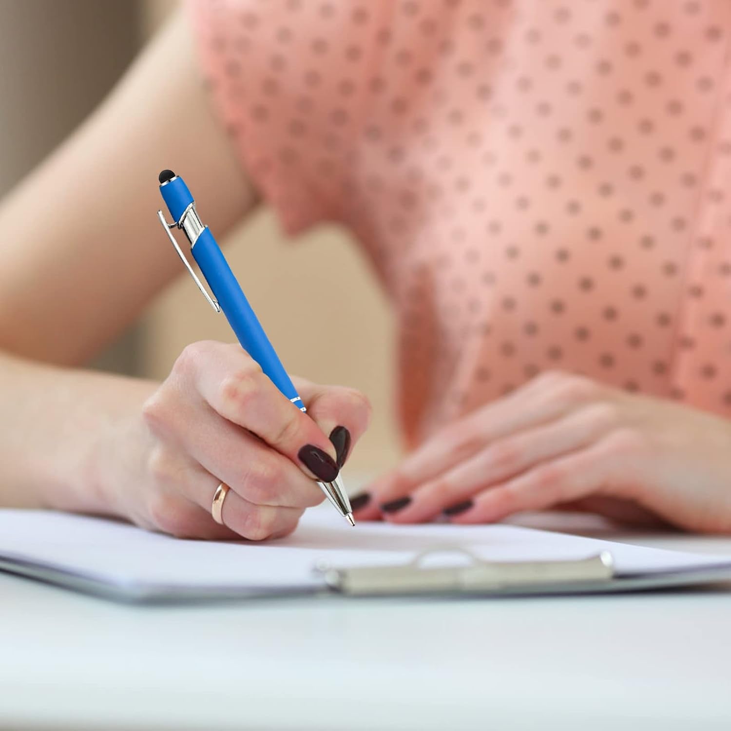 PASISIBICK 12 Pieces Blue Ballpoint Pen with Stylus Tip, 2 in 1 Stylus Stylish Pen, Blue Metal Stylus Pen for Touch Screens, Black Ink, 1.0 mm Medium Point(12 PCS Light Blue)
