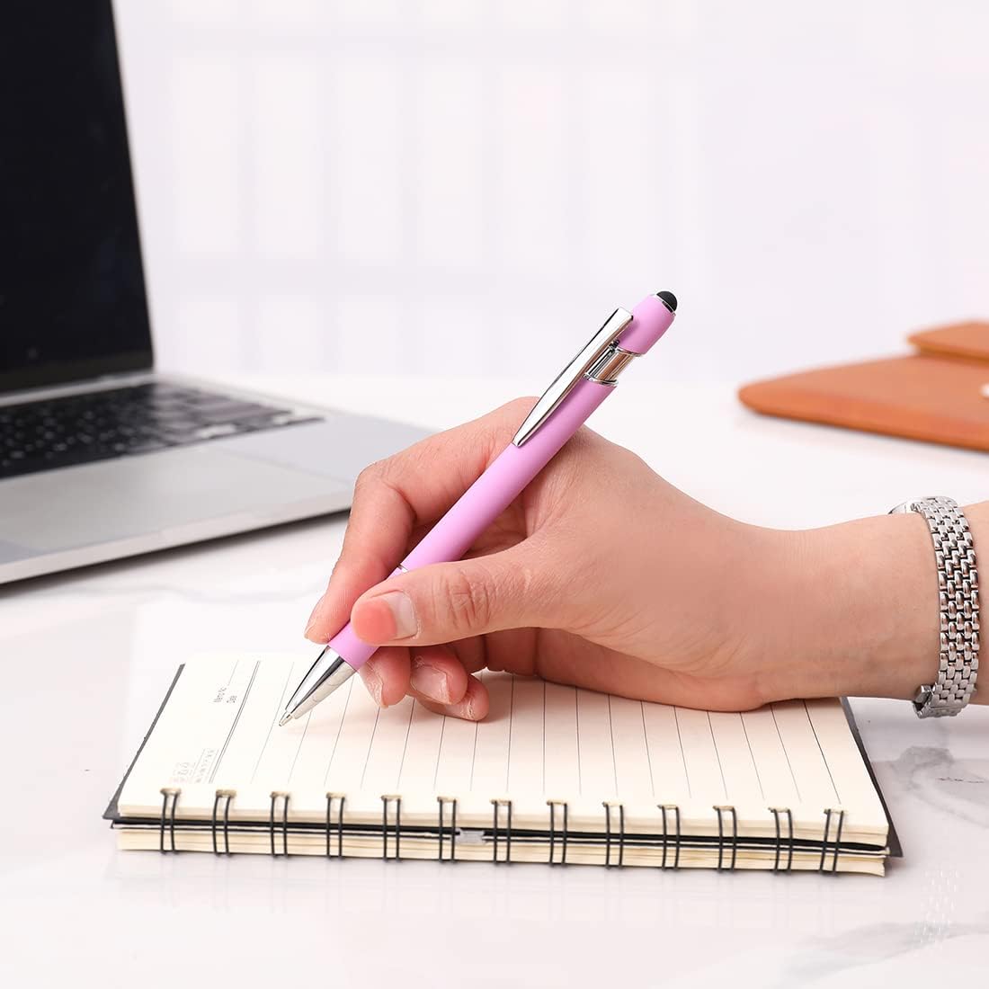 Ballpoint Pen with Stylus Tip, Soft Touch Click Metal Pen, 1.0mm Medium Point, Black Ink, 12 Count(Light Purple)