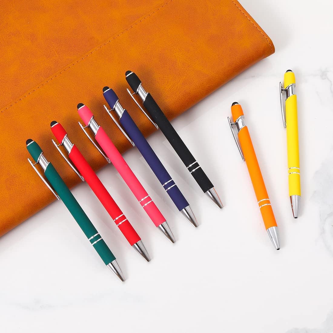 Ballpoint Pen with Stylus Tip, Soft Touch Click Metal Pen, 1.0mm Medium Point, Black Ink, 12 Count(Red)