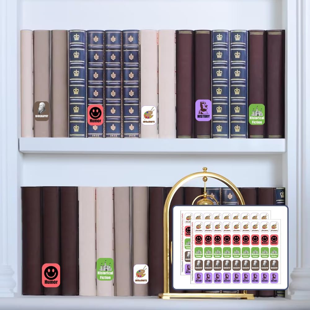 Genre Book Spine Labels for Library | Classroom Library Classification Stickers 450pcs | Arts,Humor,Historical Fiction,Biography,History
