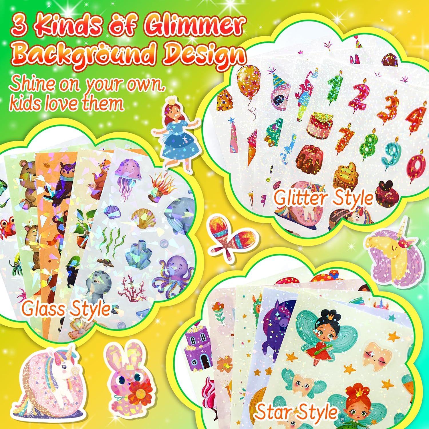 - ✨1000+ Holographic Stickers Set✨ This holographic sticker collection for kids includes 1000+ super shiny stickers with 3 themes. 3 different holographic effects are adopted. Each sticker features holographic glittering design, stylish and attractive, showing a dazzling and colourful effect in different lights and angles.
