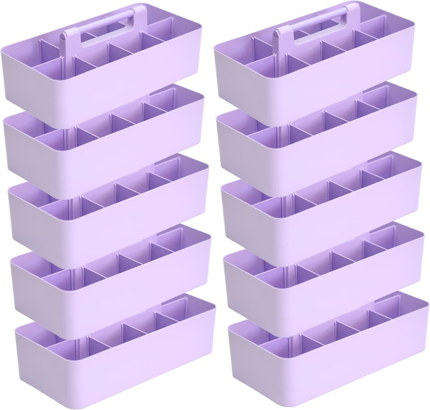 -Large Portable Caddy, DIY Dividers, 8 Compartments, School Office Supplies Home Business Basket with Handle Storage Organize Made in USA (10 PACK, Lavender)
