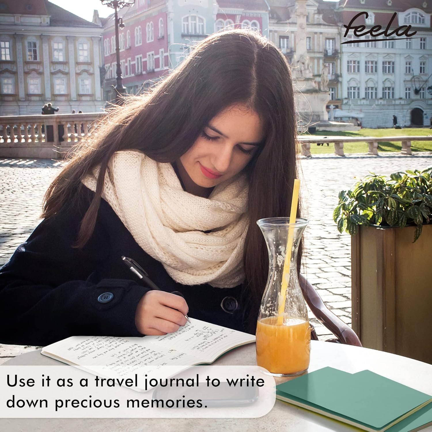 • Feela 16 Pack Soft Cover Journals include 16 dark green A5 college ruled soft cover travel journals. 250 GSM colored paper cover outside and 80 GSM smooth writing lined pages inside.