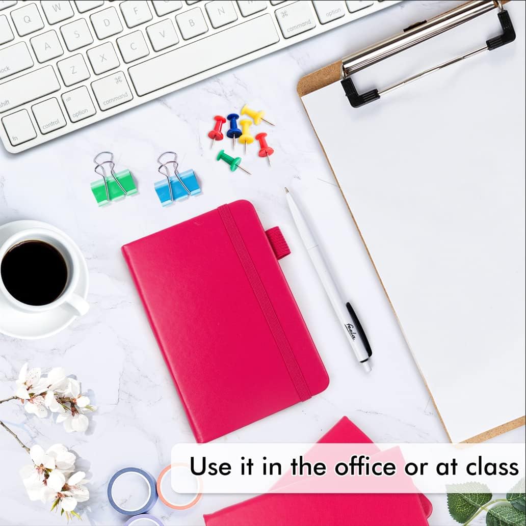 feela 15 Pack Pocket Small Notebooks Bulk, Mini Cute Memo Notepads Hardcover College Ruled Lined Journals with Pen Holder for Women Girls Office School, with 15 Black Pens, 3.5”x 5.5”, A6, Berry