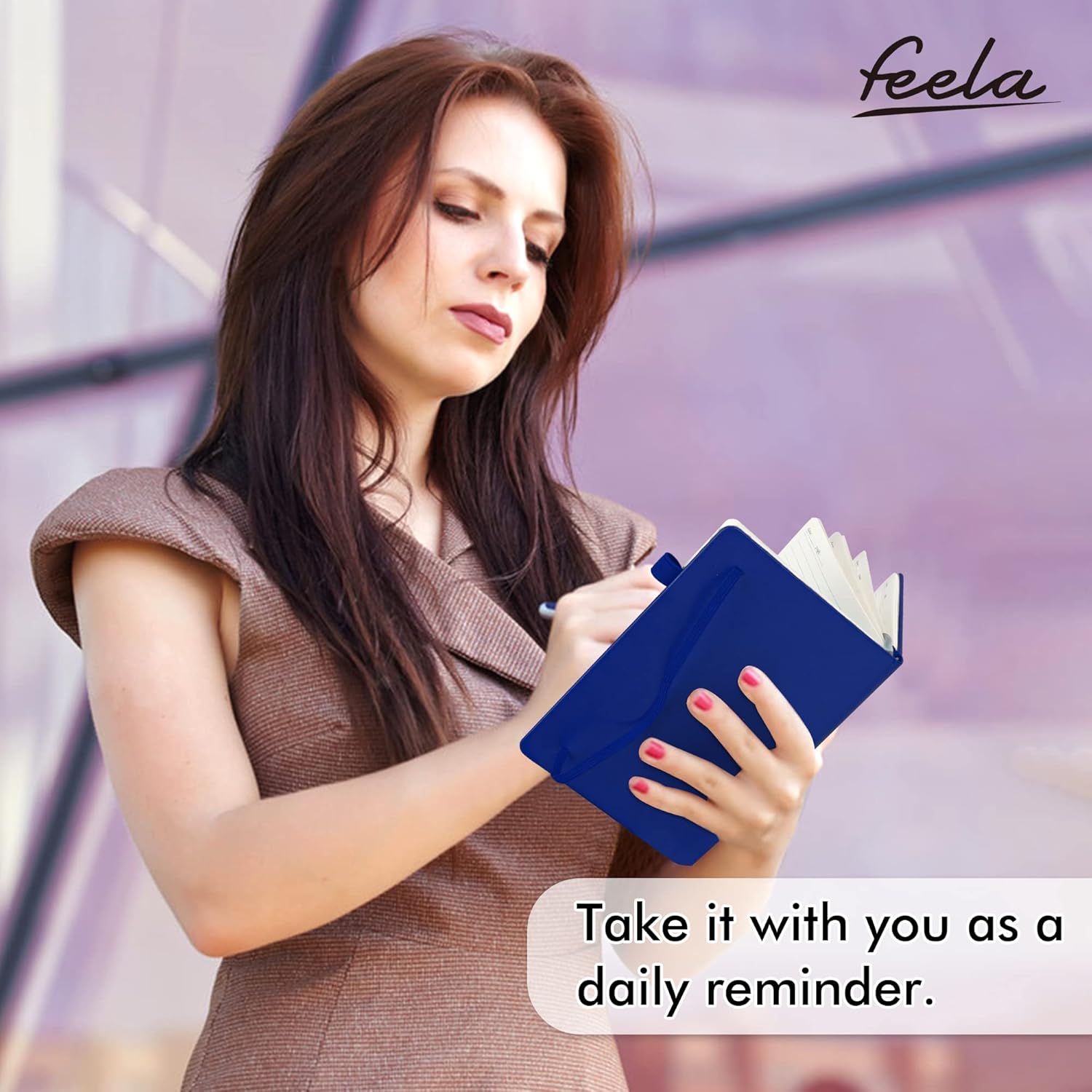 - Feela 8 Pack Classic Ruled Notebooks contains 8 navy ruled sturdy cover notebooks and 8 Black Retractable Pens. Each of the notebooks measures 8.3” x 5.1”, which is perfect to carry and easily held by young girls and boys. These black cute pens are customized to be placed in the pen holder, which is pretty convenient.