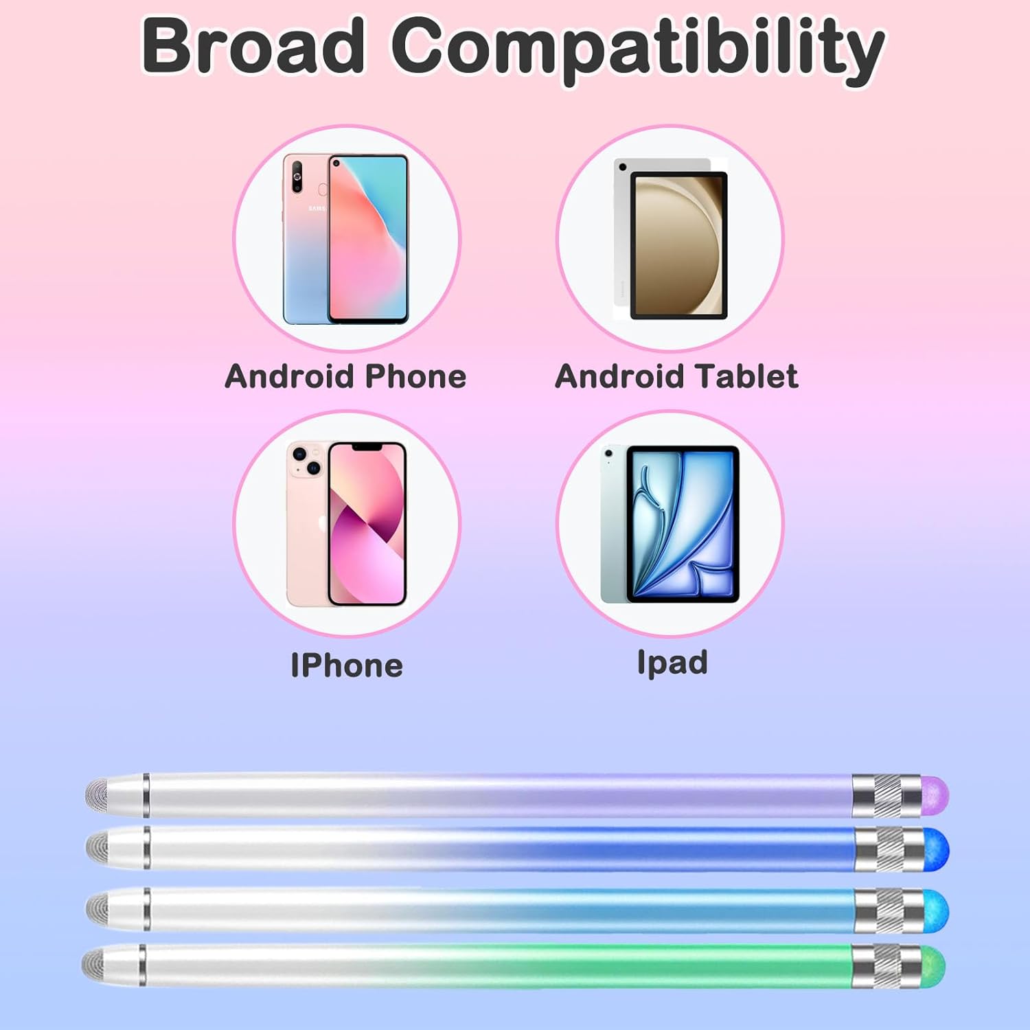 2 in 1 Stylus Pens for Touch Screens High Sensitivity & Precision iPad Pen with 8 Extra Tips,Stylus Pen for iPhone Compatible with All Touch Screen Devices-4 Packs