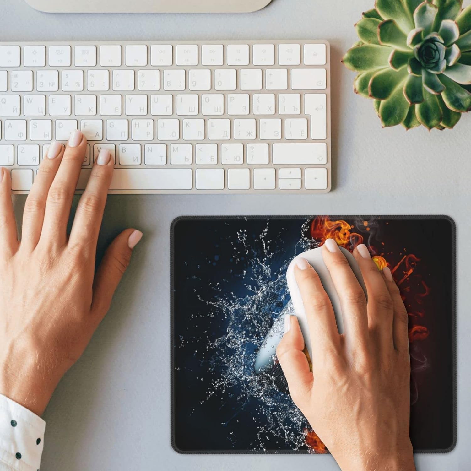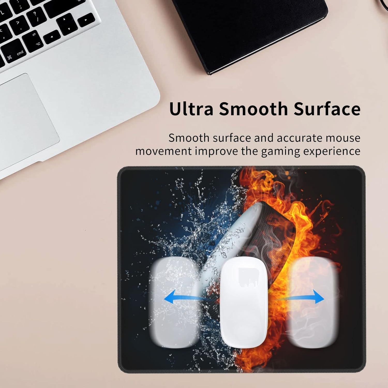 Boys Gaming Mouse Pad with Hockey Ball Fire Water Pattern, Large 12 x 10 inch Mouse Pads with Stitched Edge for Home Office Computer Laptop Non-Slip Rubber Base Desk Mat for Wireless Mouse