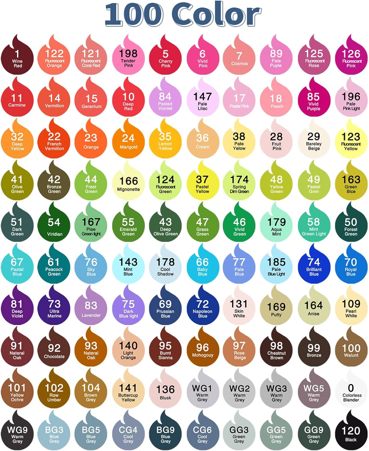 - 【Vibrant Colors, Fade-Proof】Alchilalart marker set boasts 100 bright and vivid hues, perfect for layering and creating gradient effects. With shades ranging from fiery red and bright yellow to clear blue and deep dark brown, the color palette is well-defined, allowing for creative freedom. Your artwork will retain its beauty over time, as these colors are designed to last.