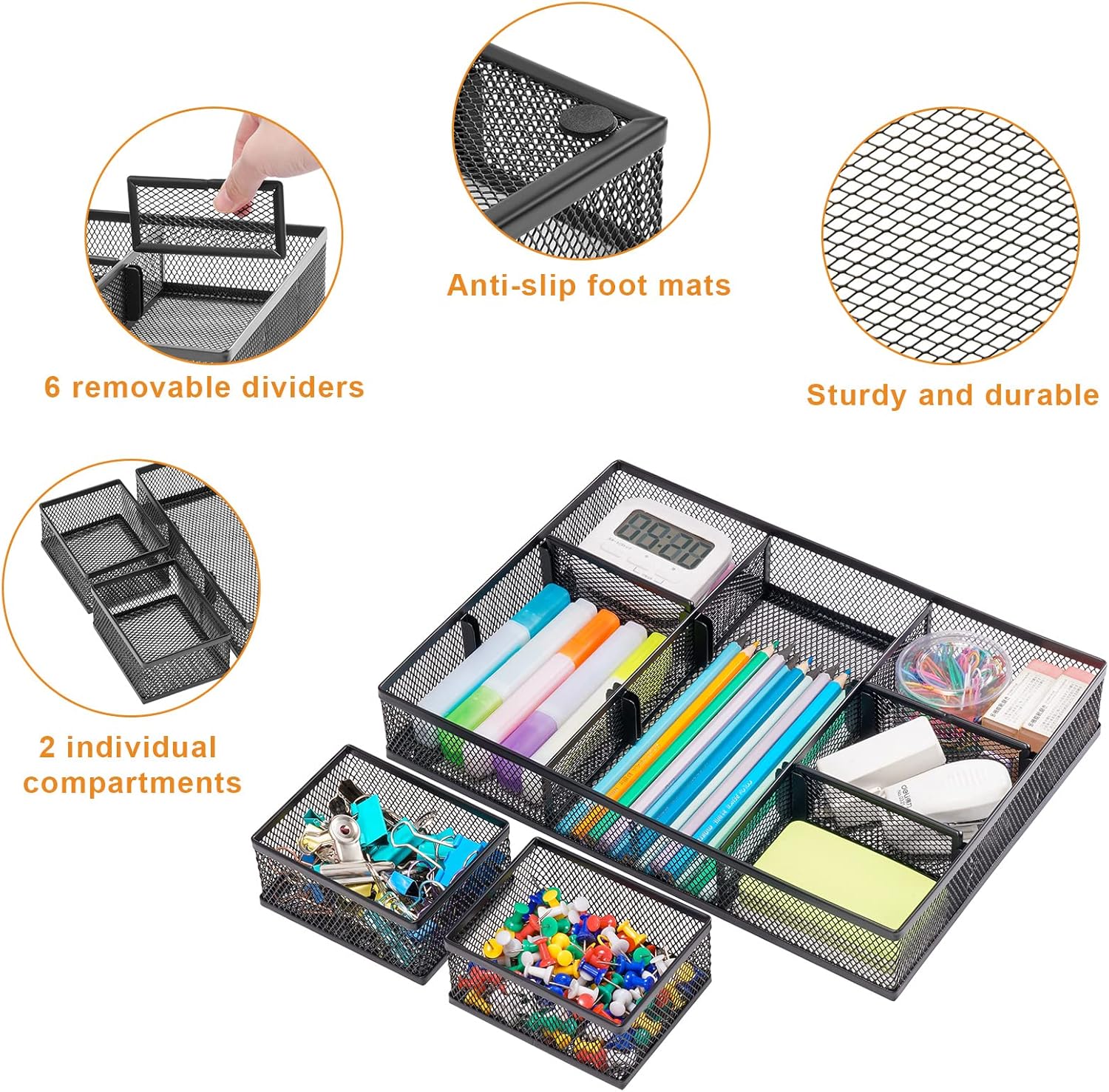 - ăStury and DurableăMade of sturdy black wire mesh structure with powder coated surface, smooth and corrosion-resistant. Non-slip feet can keep the product stable.Big DrawerïŒ12*8.3*2.2inchesïŒ2PC Small DrawersïŒ3.5*3*1.9inches