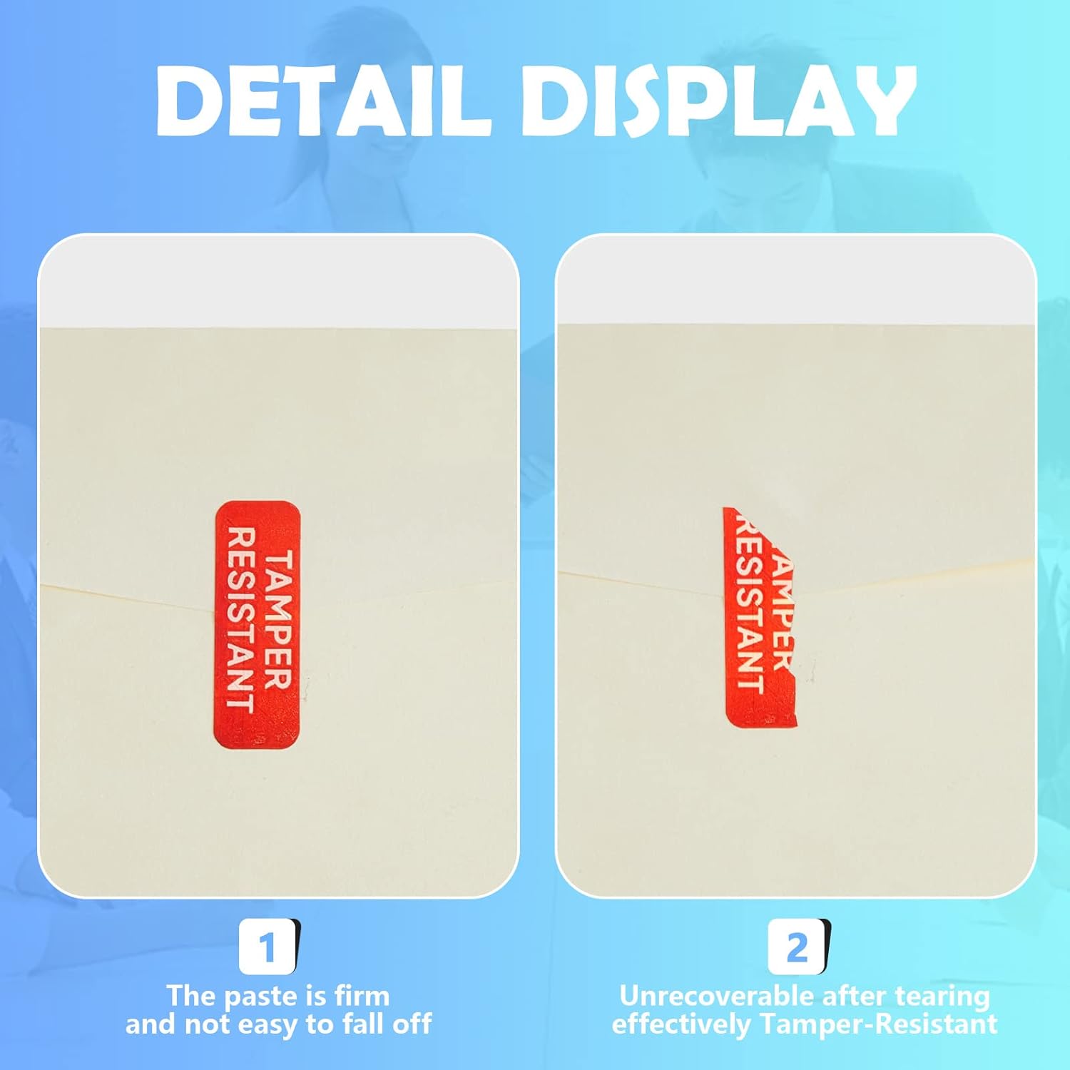 - Firmly Applicable: tamper resistant tape adopts nice adhesive back for your applications; It can stay firmly on the surface whether you're packaging handmade goods, mailing information, or using them on take out boxes, they're a suitable choice