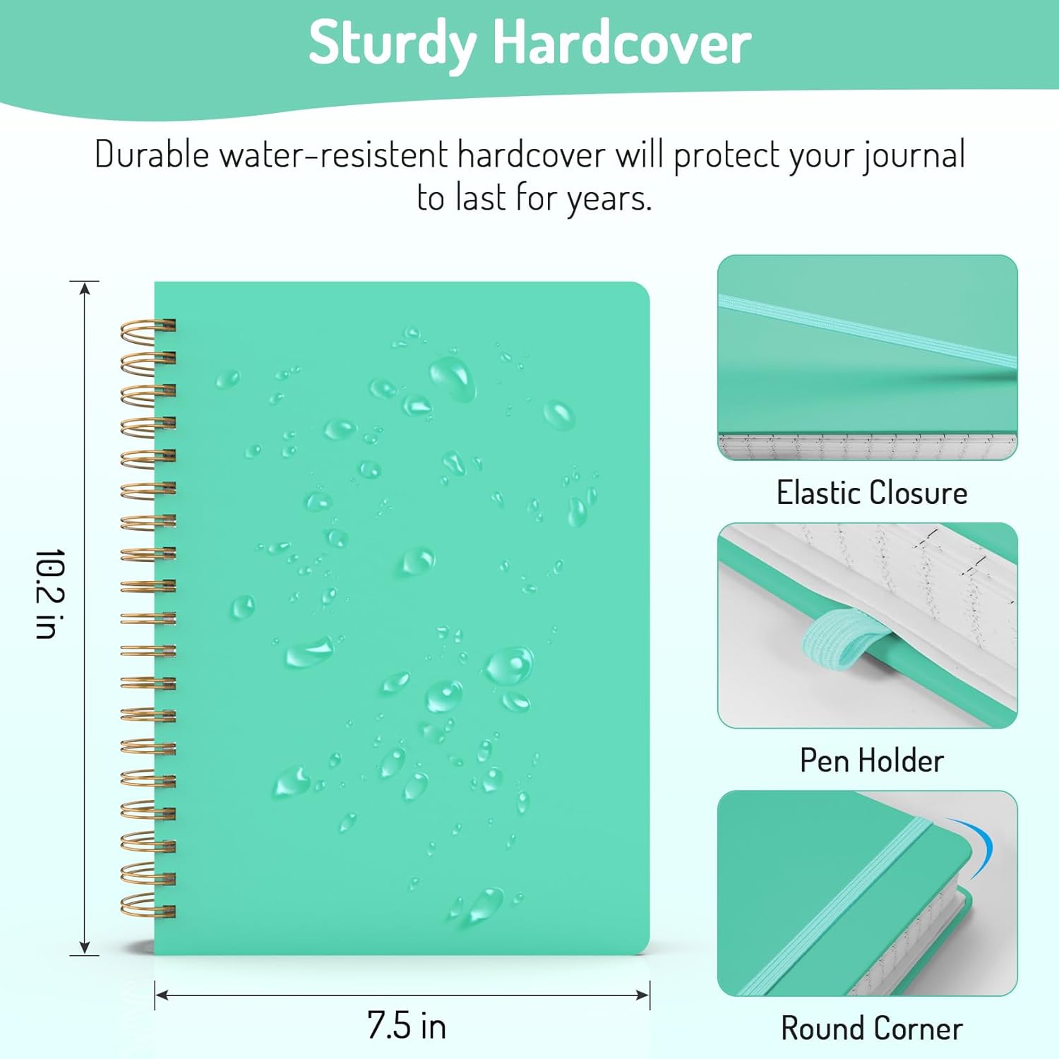 - Strong Metal Twin-wire & Durable Hardcover: Feature a super durable Golden double wire spiral binding with heavy-duty hardcover; making it easy to fold over and laying the notebook totally flat easily, giving you a better writing experience. The professional durable water-resistant hardcover will protect your journal to last for years.
