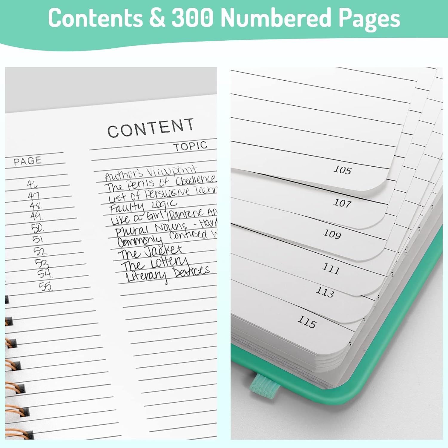 Forvencer Lined Spiral Journal Notebook with 300 Numbered Pages, B5 College Ruled Thick Journals for Writing with 100GSM Paper, Hardcover Notebooks with Contents for Work, School, Women, Men, Green