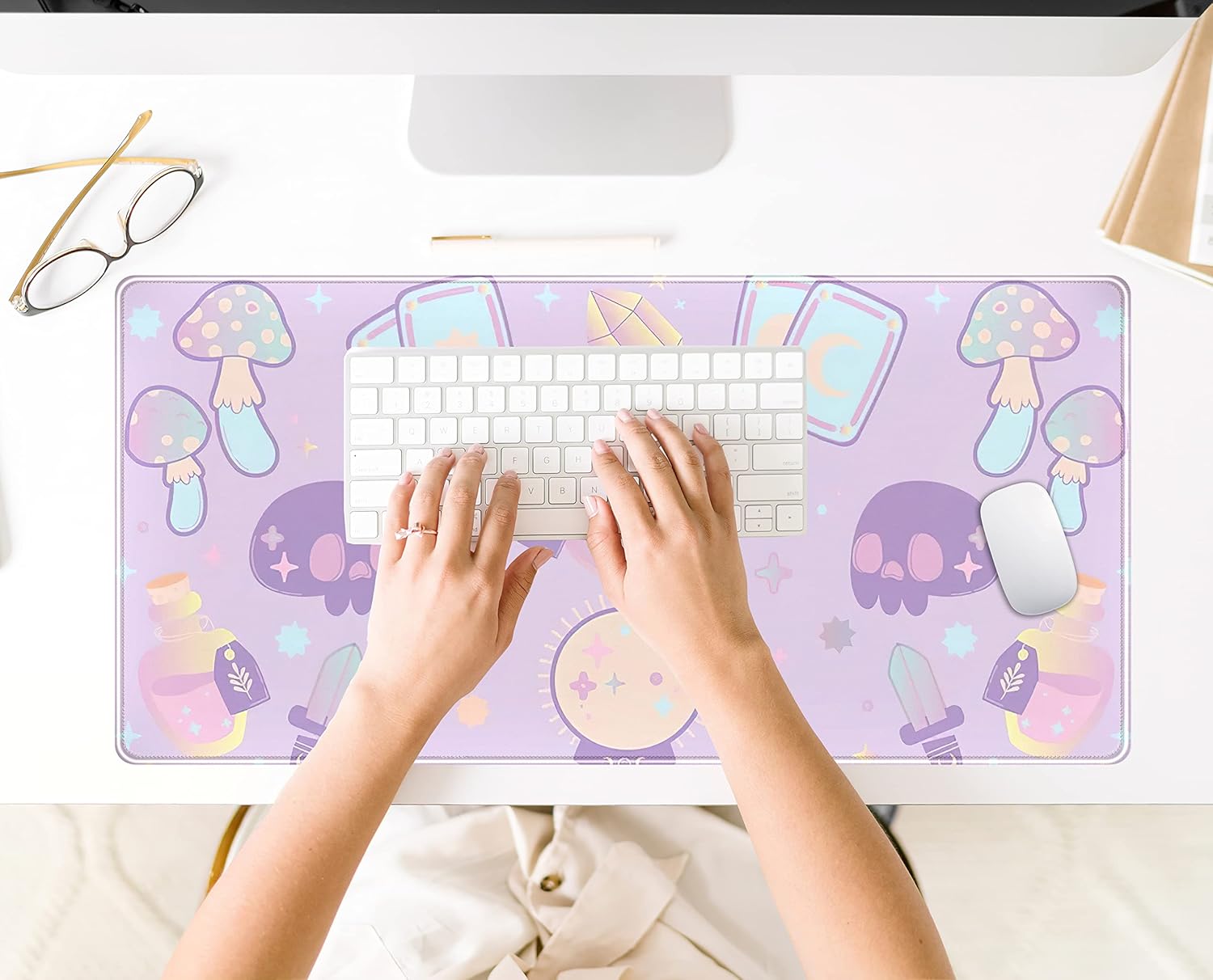 Kawaii Purple Desk Mat,Cute Witchy Elements Mouse Pad, Desk Pad Mystical Goth,XXL Gamig Desktop Mat,Extended Keyboard Mousepad Large for Computer Laptop,Girl Gamer Desk Decor 31.5''x15.7''