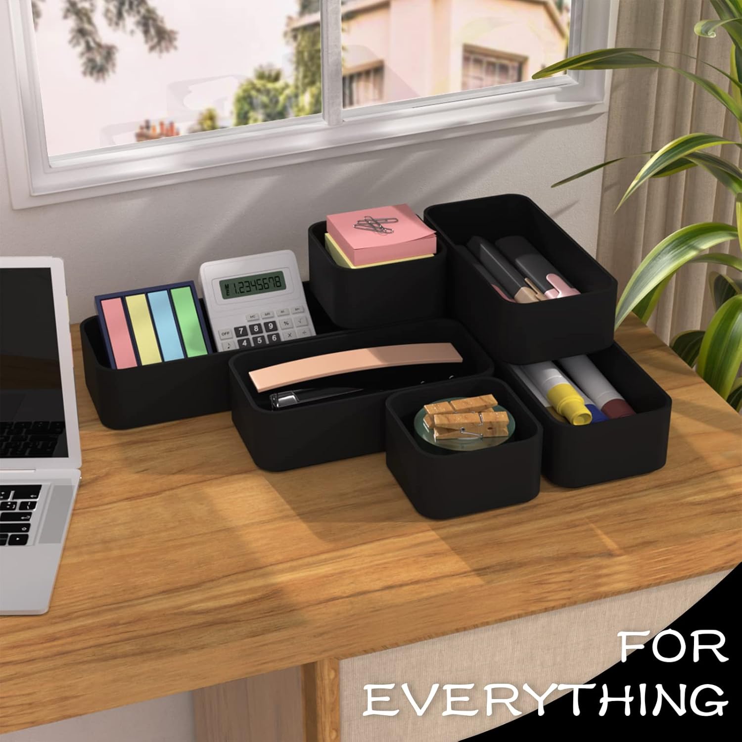 CHANCETSUI 6 PCS Stackable Drawer Organizers Set, Versatile Desk and Vanity Drawer Organizer Trays, Storage Bins for Makeup, Bathroom, Bedroom, Kitchen and Office, Black