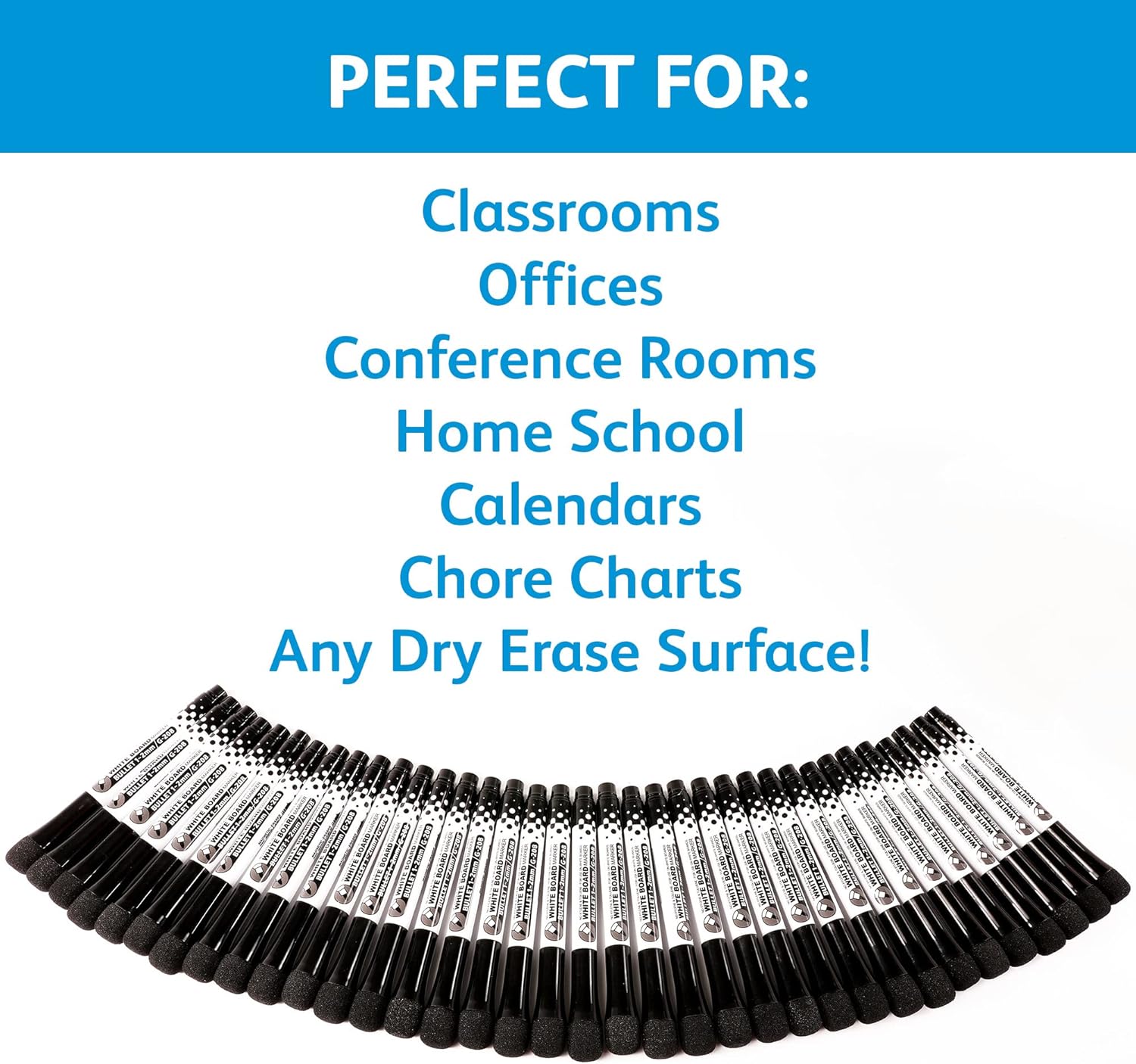 Glassboard Studio Black Fine Tip Dry Erase Markers Bulk 36-Pack with Magnetic Eraser Cap and Low Odor Ink for White Boards at School, Work, or Home
