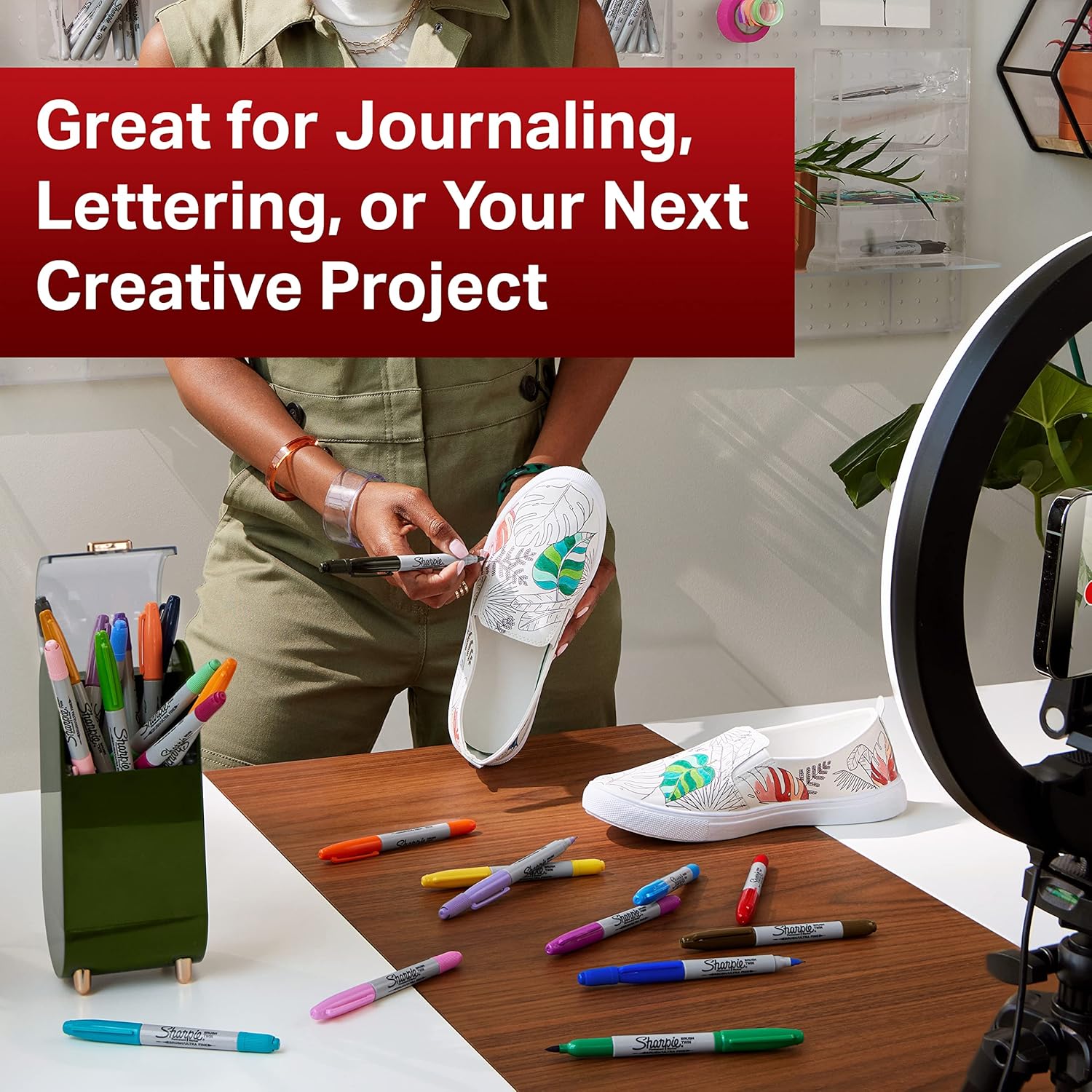 Sharpie Brush Twin Permanent Marker Brush Tip Marker and Ultra Fine Tip Black 12 Count
