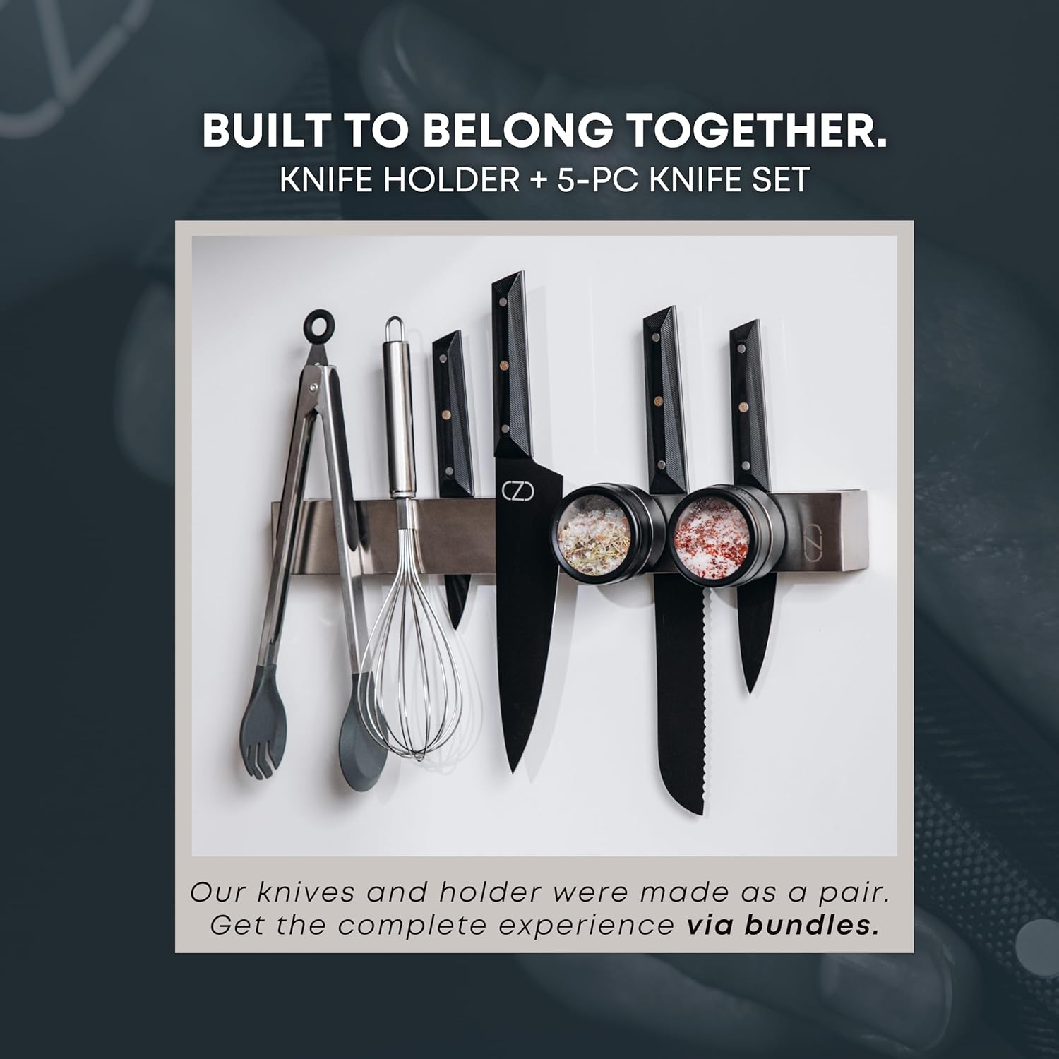 - EFFORTLESS FRIDGE MOUNT - Looking for a stylish and practical way to store your knives? Our stainless steel knife holder is designed with powerful magnets on the back, making it easy and reliable to attach to any magnetic surface, including your fridge. In case you change your mind, this is also an excellent magnetic knife holder for wall with screw mount options included.