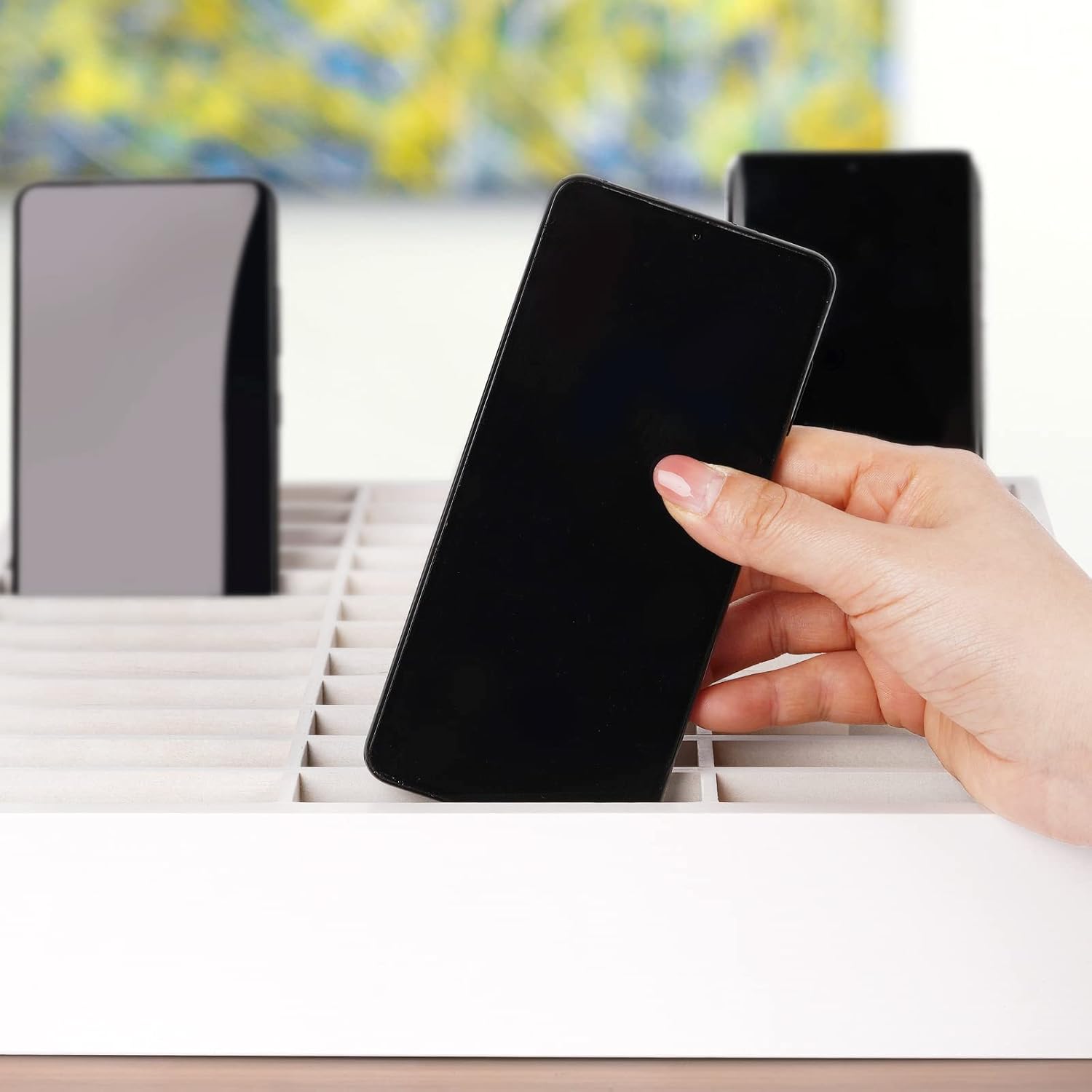 36-Grid Wooden Cell Phone Holder Desktop Organizer Storage Box for Classroom Office (White 36-Grid)