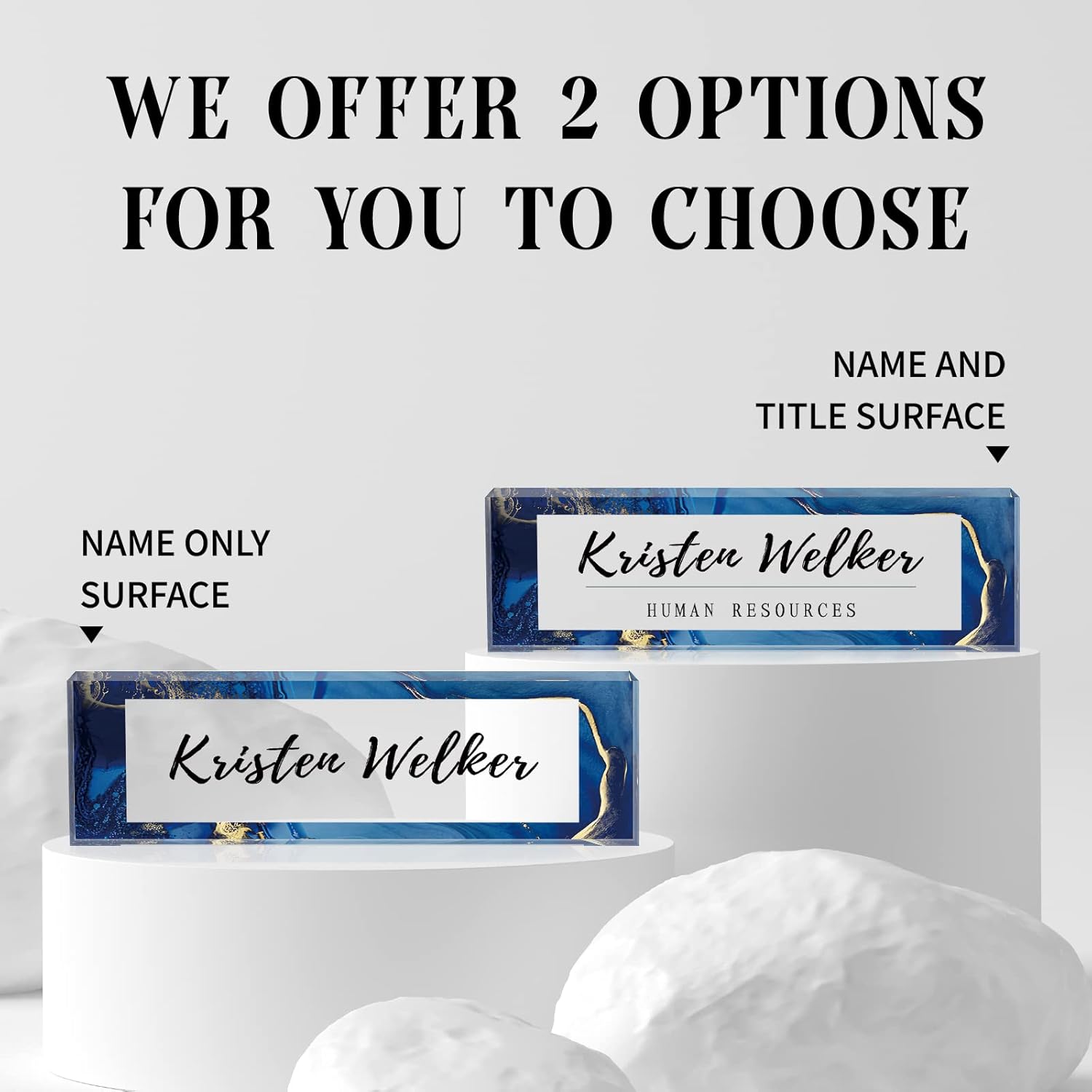 - HIGH QUALITY - The Personalized Name Sign Plates Are Made Of High Quality Crystal Clear Acrylic Blocks. This Office Nameplate Will Stand Out On Any Desk!We use high-tech UV printers to print on quality clear acrylics glass so you can visualise your memories.