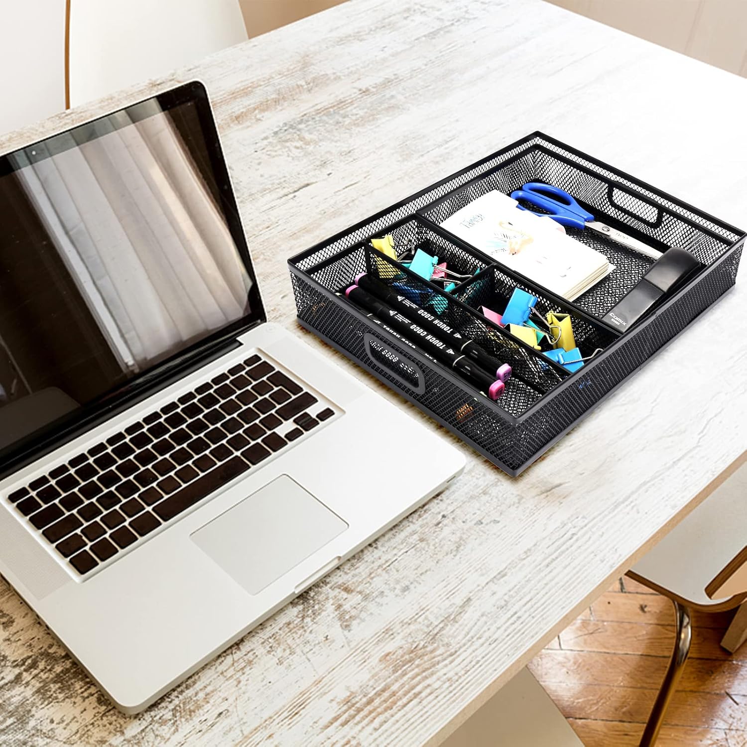 - Include three drawer organizers in different sizes. Ideal to keep office product like pen, notebook and stapler neatly sorted, as well as large-sized paper like A4 file and magazine.